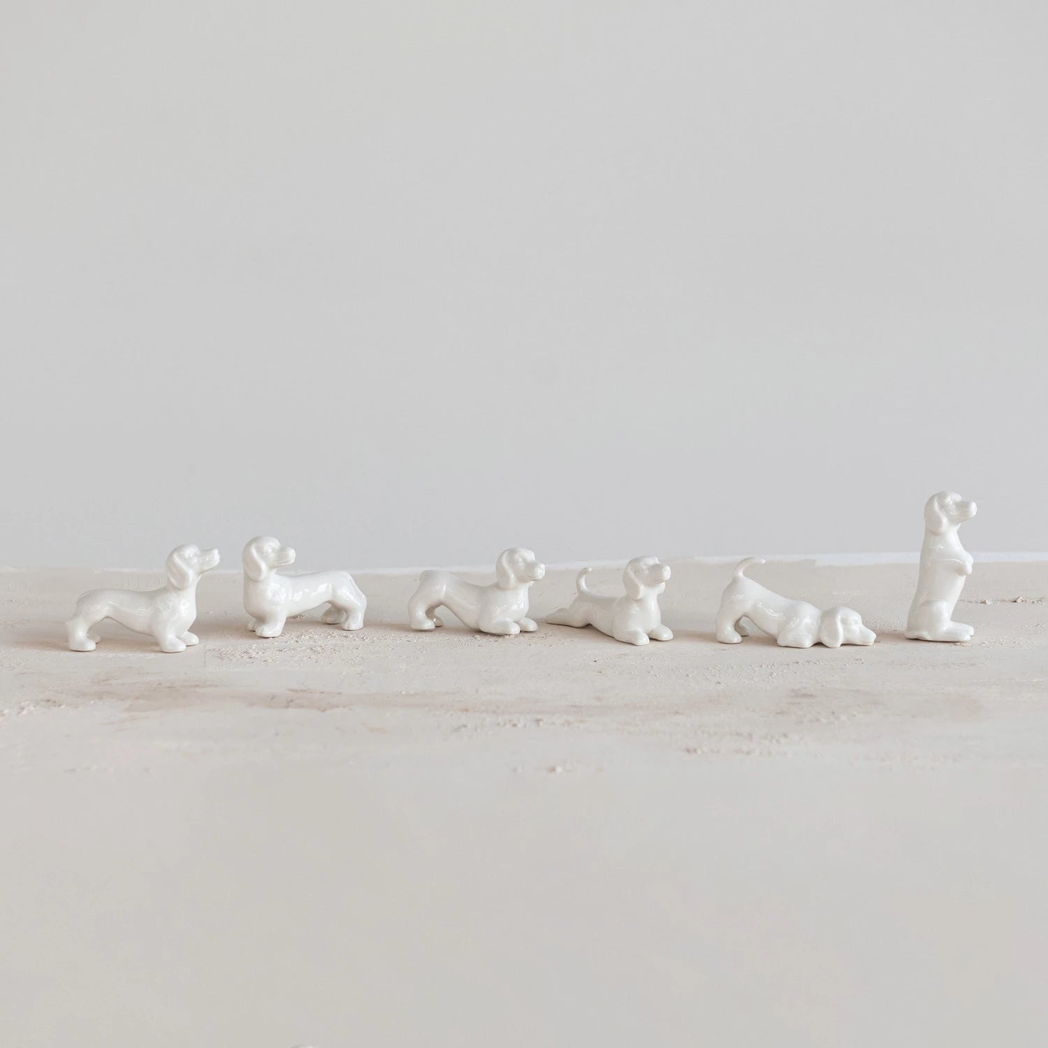Meet your new favorite desk buddies—precious white stoneware dogs that pack personality into pint-sized packages. Choose between two cheerful dimensions (1-3/4" or 3-1/2" long) and discover which of six playful styles lands on your doorstep. Crafted from sturdy stoneware, these little characters are ideal for dog lovers, collectors, and anyone craving a smile-inducing accent piece. Each figurine ships individually, so you can build your own quirky canine crew.
