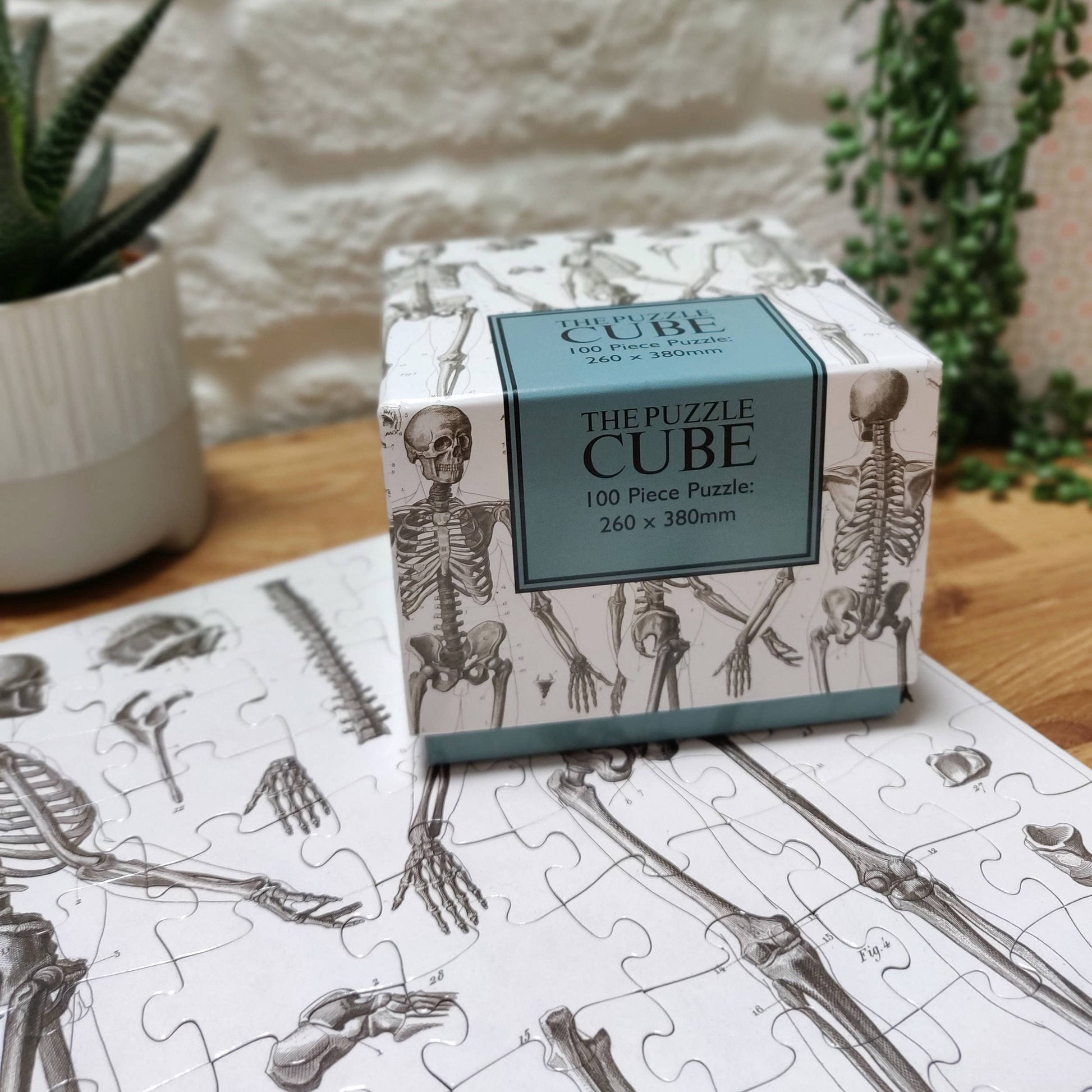 100 piece jigsaw in Skeleton design.The jigsaw puzzle is presented in a detailed cube box.