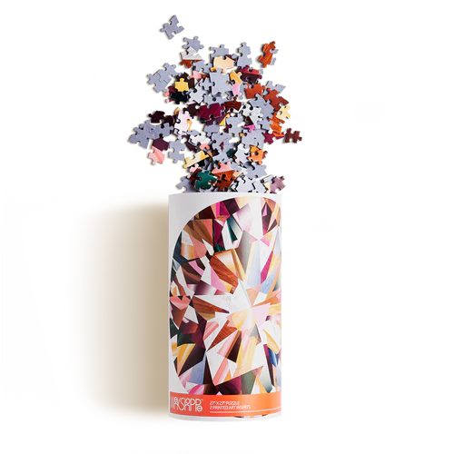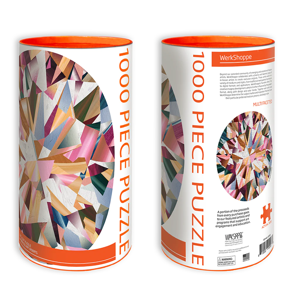 "Inspired by a close look at a Multifaceted gemstone struck by the perfect light, this piece is a deep, dimensional dive that lets you get lost in every angle. Filled with shapes and colors that make you feel as if they’re dancing with each other, Multifaceted is a truly mesmerizing design."