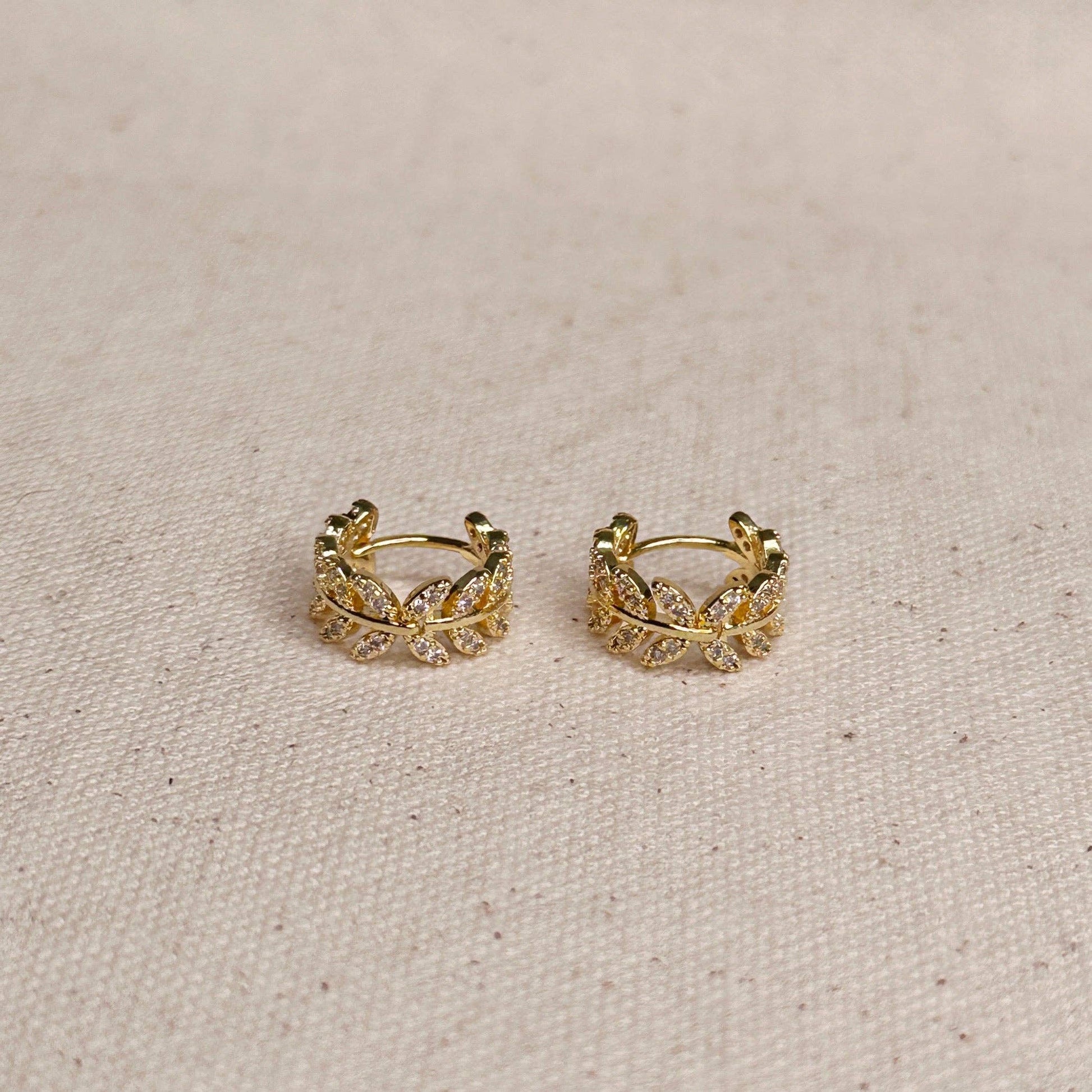 18k Gold Filled CZ Leaf Clicker Hoop Earrings