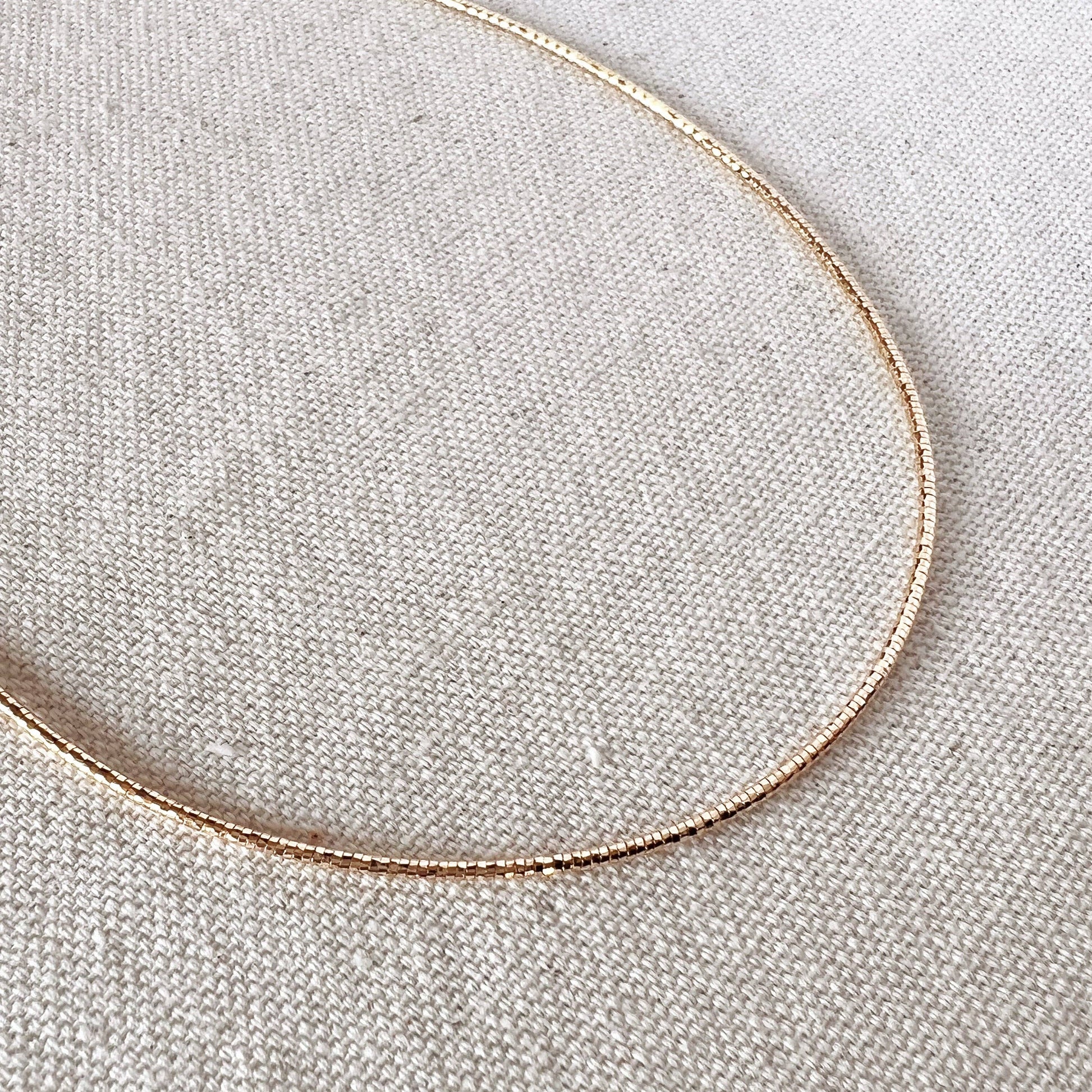 1.2 mm round Omega style chain necklace in 16 inches length.