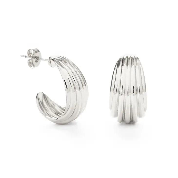 Vintage Ribbed Shell Hoop Earrings | Silver | SKU: 24VR-S