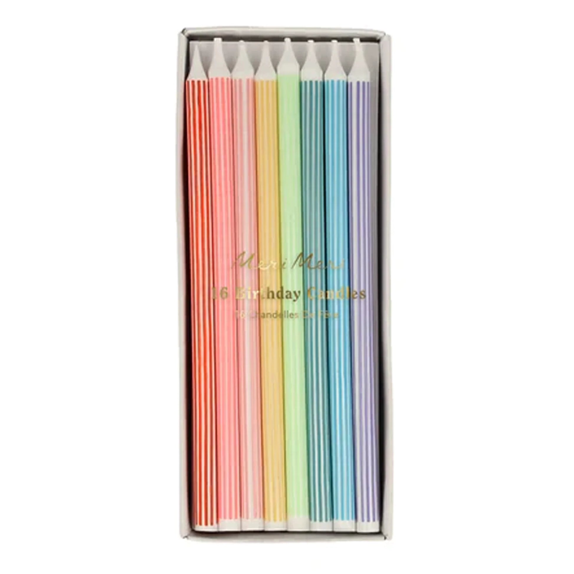 Make a statement with stripes! Our sensational striped candles are perfect to light up your party cakes. The rainbow choice of colors will suit any party theme.