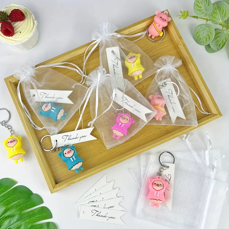 1 set of 30pcs, raincoat pig keychain set, including 10 raincoat pigs, 10 labels, 10 white mesh bags, suitable for creative gift keychains, bags, pendants, birthday party gifts, school rewards, birthdays, weddings, carnivals, etc