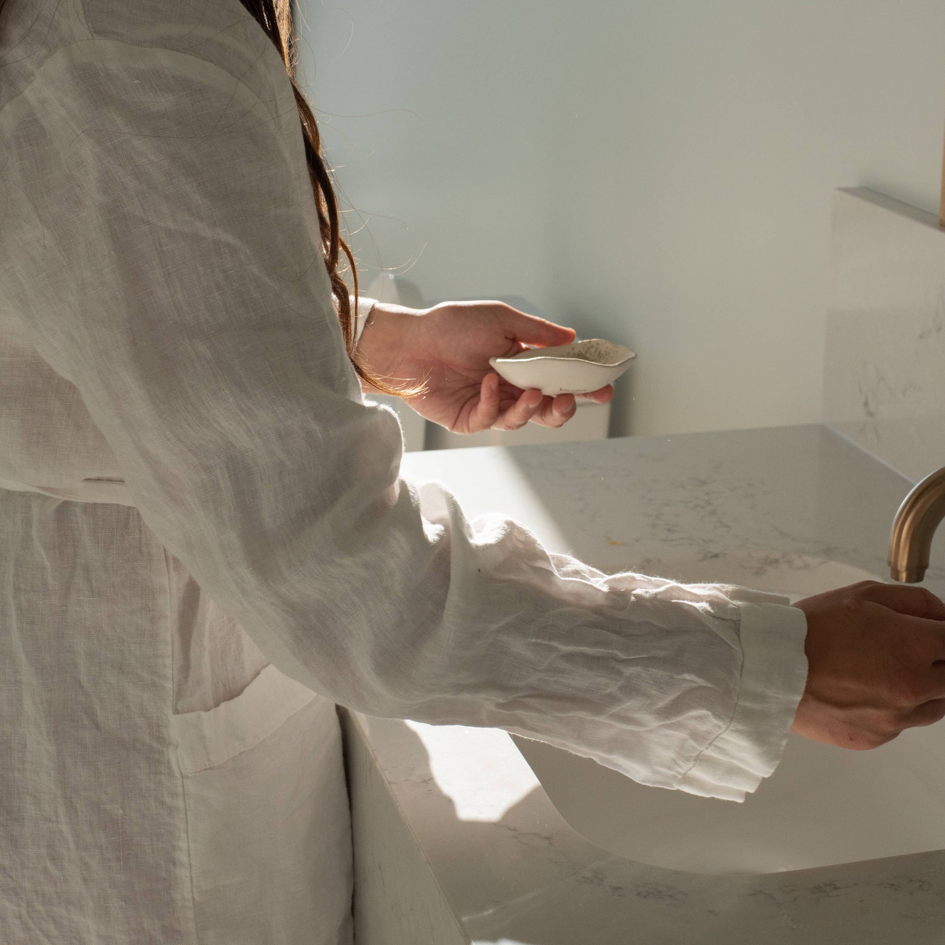 Harnessing the power of the sea, our Alabaster Mask is packed with over 60 micronutrients, including a rich array of vitamins, minerals, amino acids, essential fatty acids, enzymes, and antioxidants. This mask naturally supports skin health and balance. Seaweed and Moringa Leaf Powder replenish vital minerals, enhancing your skin's tone and texture, while Ascorbic Acid and Zinc Oxide provide powerful antioxidant benefits, boosting circulation and calming inflammation to reduce puffiness. Embrace the natural power of our mask for deeply cleansed, hydrated, and glowing skin.