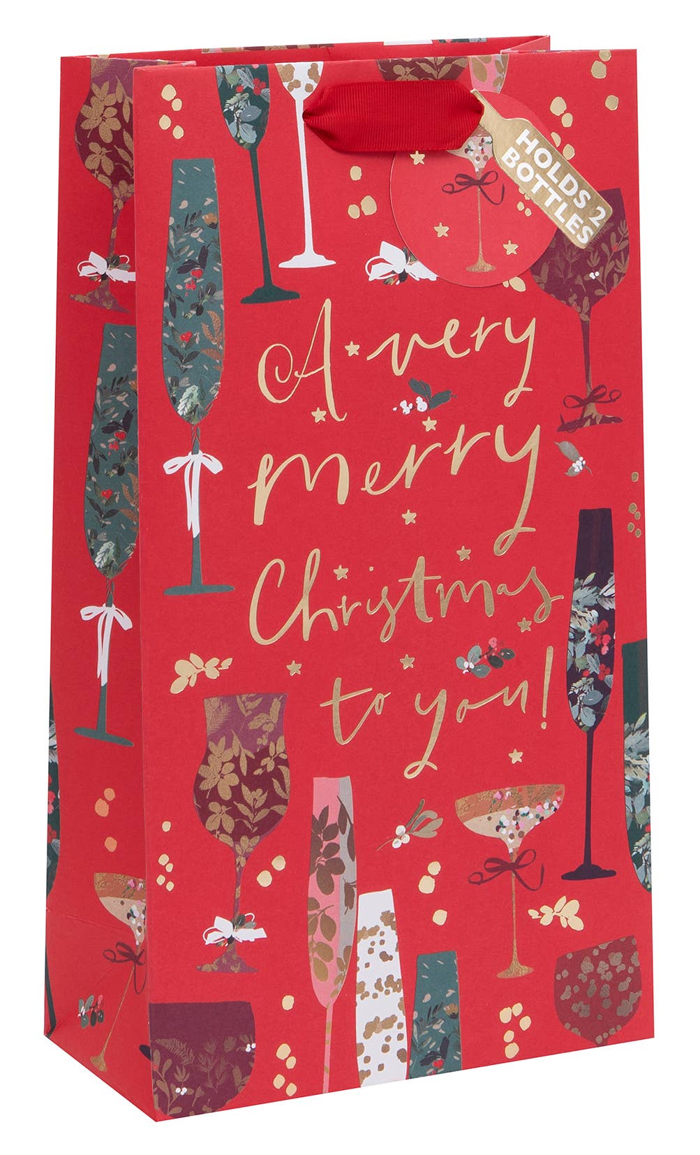 Welcome to the Glick family! Presenting our BAG DOUBLE BOTTLE COLLECTION. This exquisite gift bag is an elegant solution for all your gift-giving needs. Ideal for any occasion, this bag is designed to securely hold two bottles, making it a perfect choice for dinner parties or celebratory events. As part of our commitment to sustainability, this bag is crafted from luxury paper, offering both durability and style. With over 20 years of experience in delivering unique, high-quality paper goods, we are proud to provide products that you'll love and that are kind to our planet.