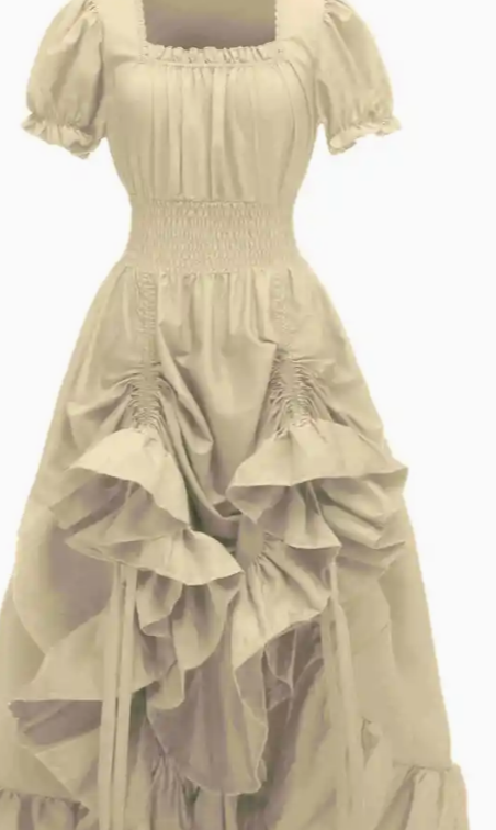 Solid Square Neck Costumes, Vintage Puff Sleeve Maxi Dress, Women's Clothing
