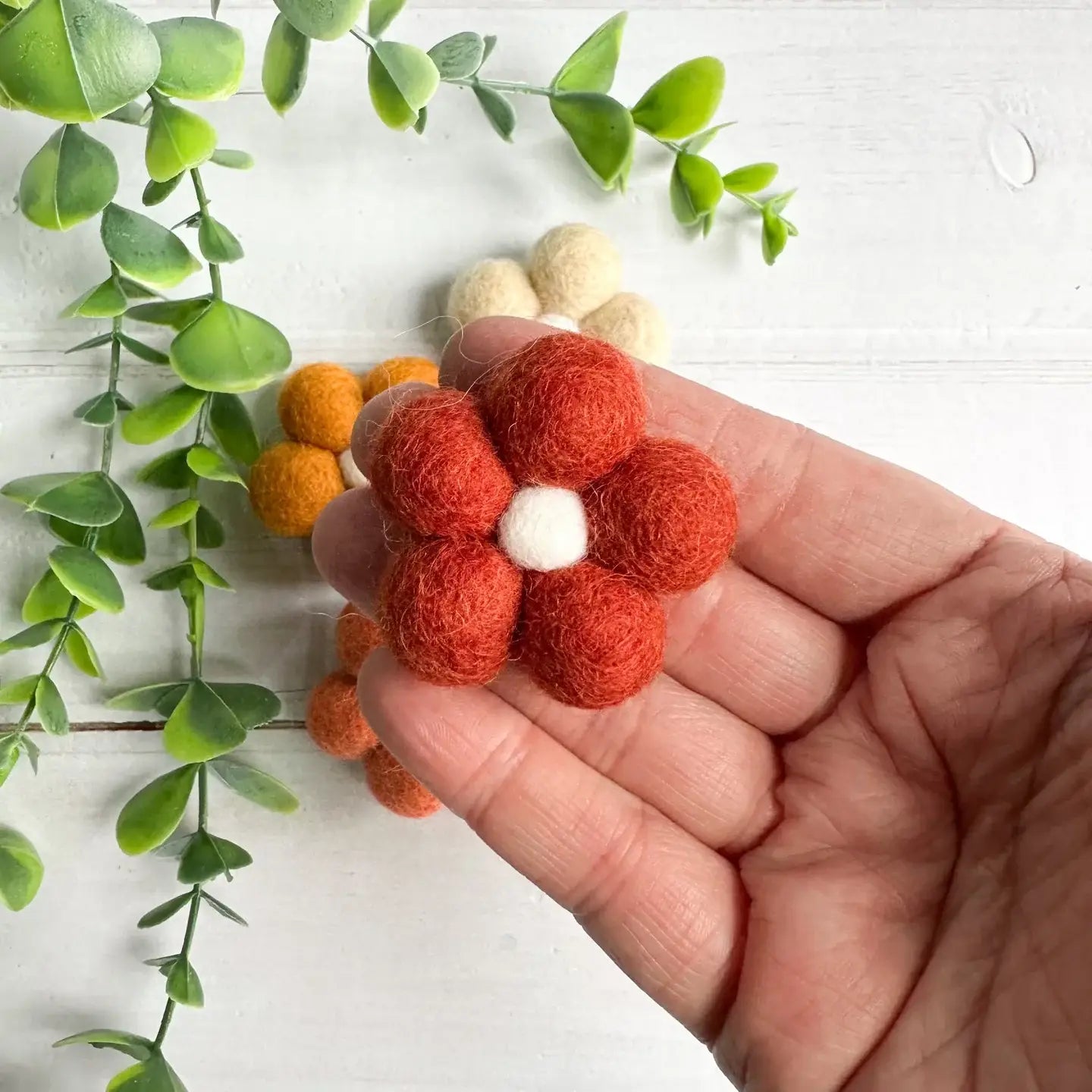 Each flower is hand crafted by fair trade artisans using both the wet felted and needle felted methods. These adorable flowers are perfect for sensory play, learning, decor and garlands! Due to the handmade nature of these materials each product may differ slightly from pictures. Material: 100% Wool