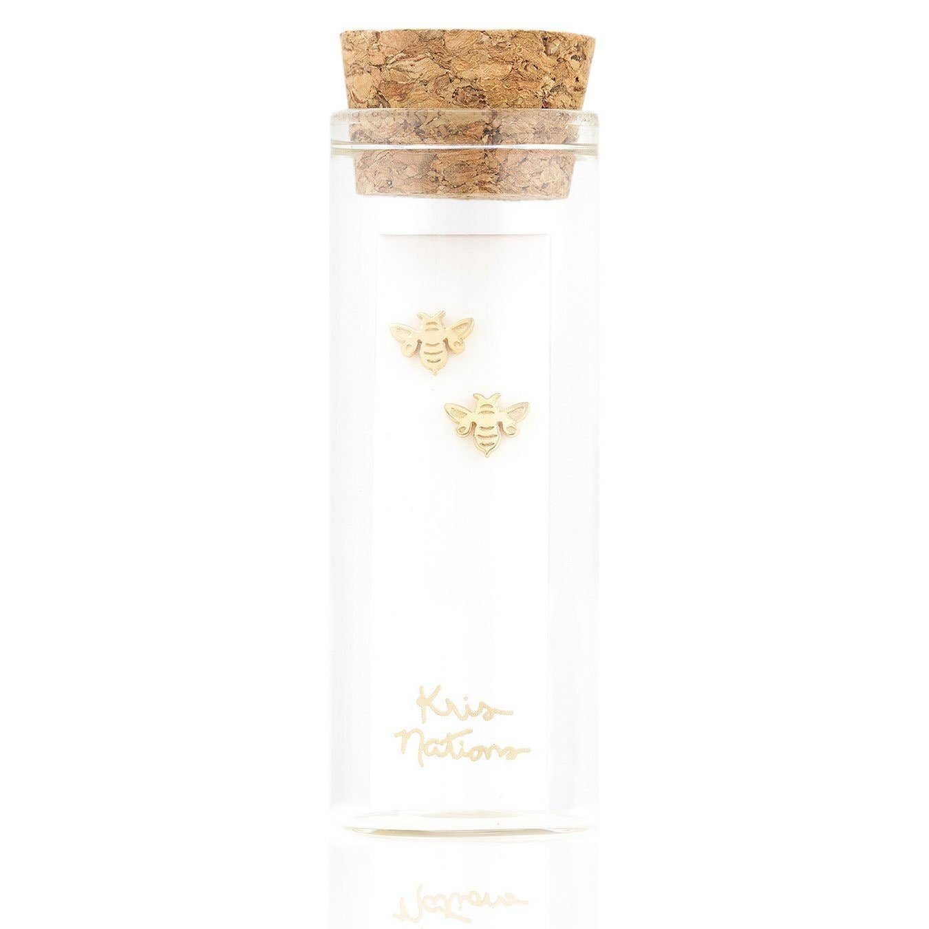 Bumble Bee Stud Earrings. Studs measure approximately 10mm wide. Available in sterling silver or 18k gold vermeil (solid sterling silver plated in 18k gold). Packaged in our signature glass bottle.
