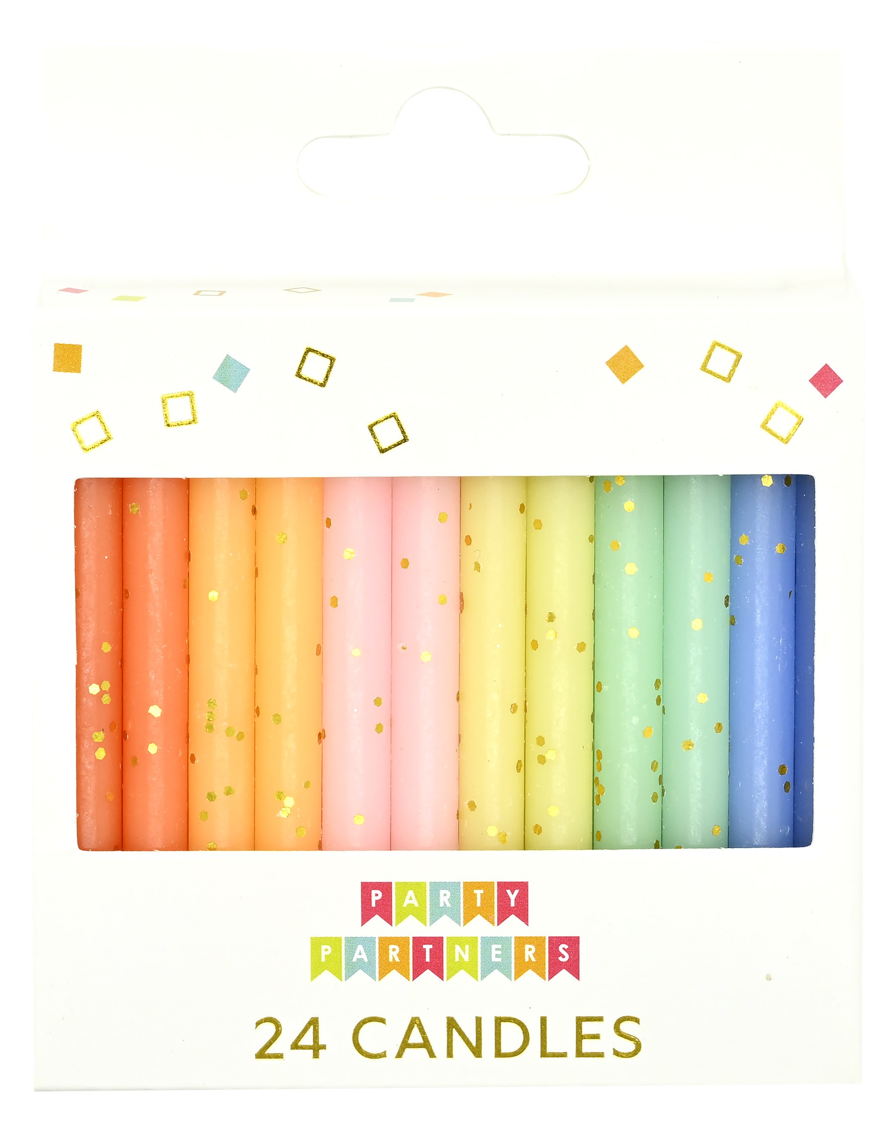 Add a touch of elegance to any birthday or special occasion with these Pastel Gold Glitter Candles! This set includes 24 beautiful candles in soft pastel colors, each adorned with shimmering gold glitter for a sparkling effect. At 3 inches tall, these candles are the perfect size for cakes, cupcakes, or other desserts. Packaged in a sleek paper box, they are ready to be displayed in your store and are an ideal choice for customers looking to add a bit of glamour to their celebrations.