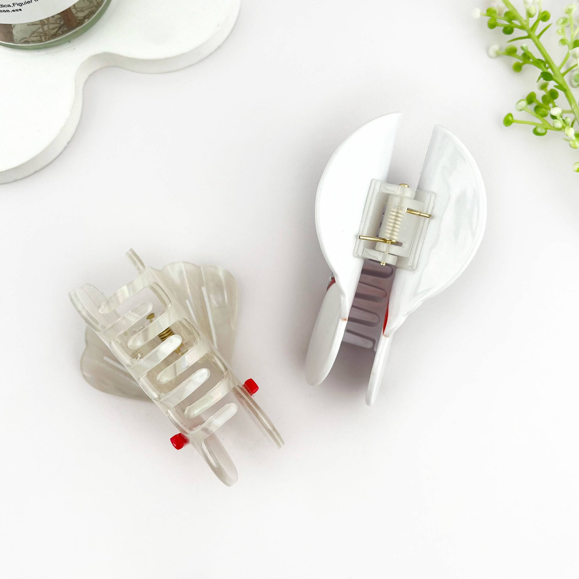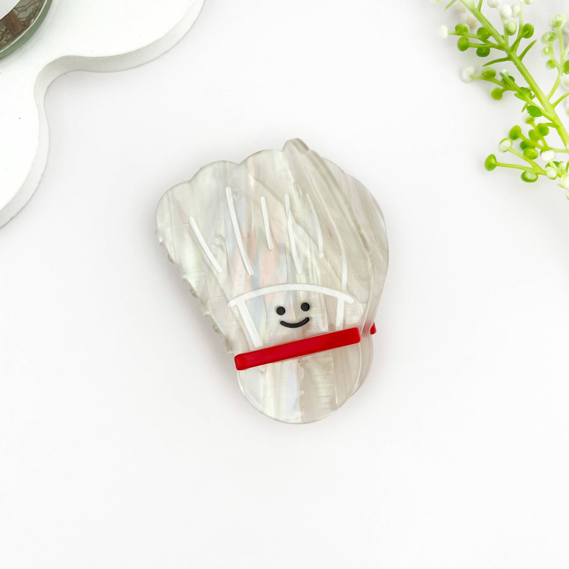 Cartoon White Badminton Acetate Sport Style Hair Claw Clip is made of transparent acetate material to create a unique badminton shape, with a cute smiley face pattern painted on the surface and bright red stripes, which is cute and playful. The clip opens and closes smoothly, firmly clamps the hair and is not easy to fall off. Whether it is daily dressing up, adding vitality during exercise, or attracting attention at parties, it can easily do the job and add points to your look. It is an exquisite item that fashionistas should not miss!
