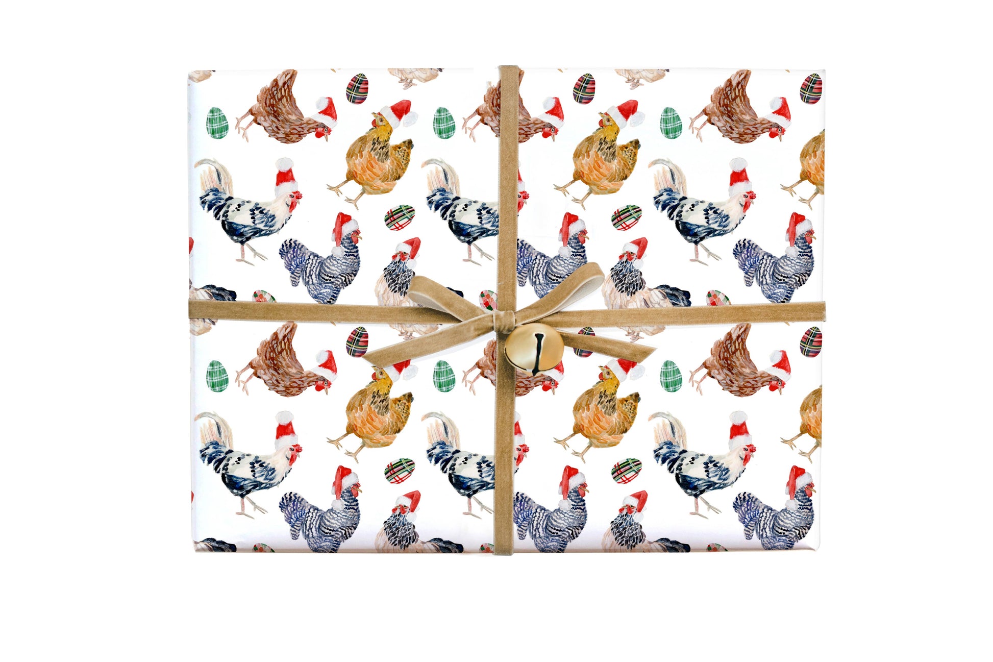 Christmas Chickens in Santa Hats Single Sheet Gift Wrap