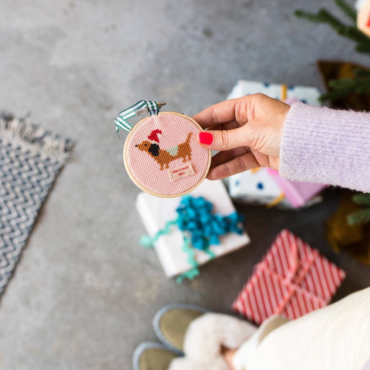 Dachshund Mini Christmas Cross Stitch Kit – 9cm Hoop