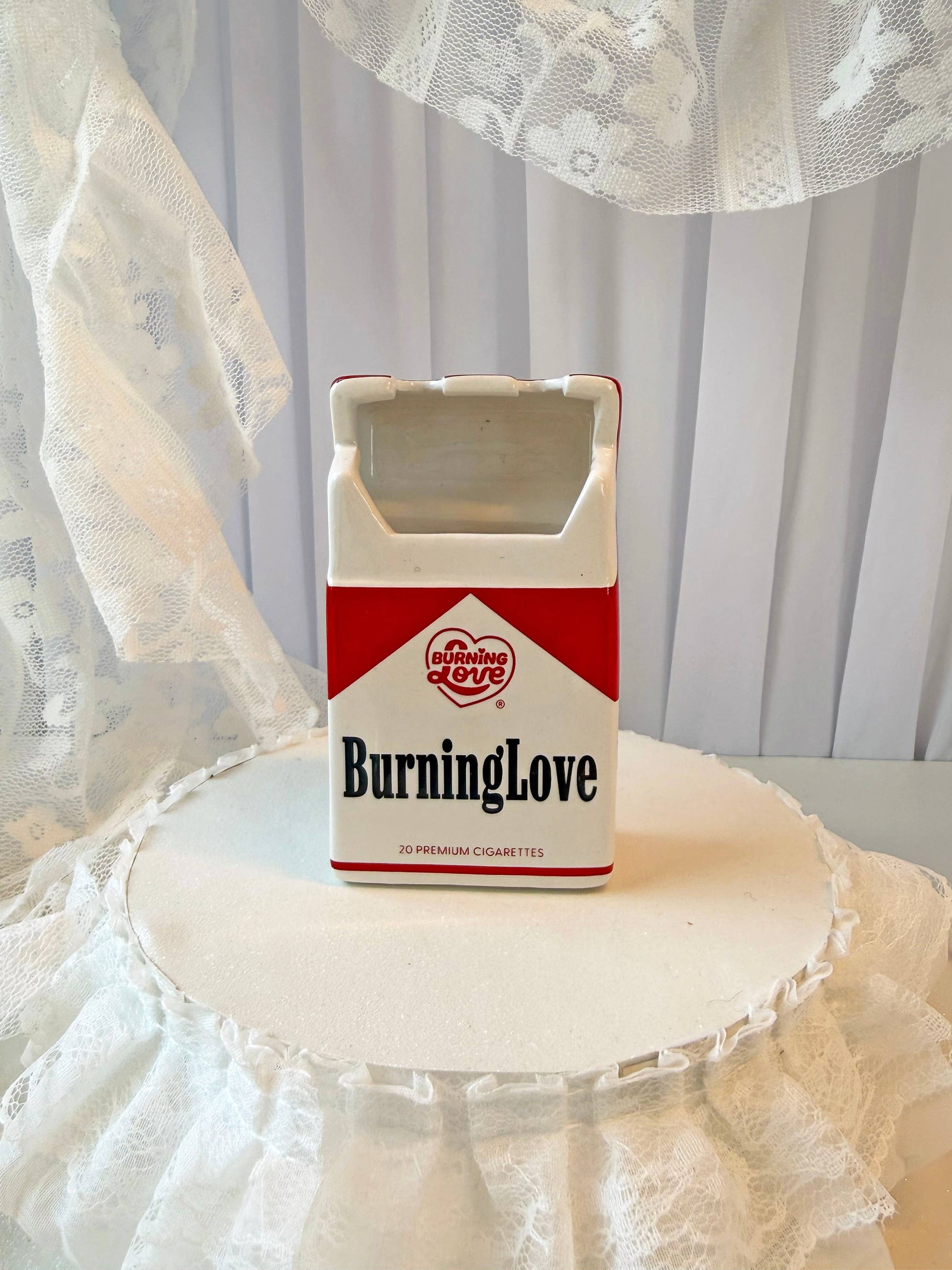 This ash tray brings some perfect vintage vibes. Made entirely of substantial ceramic, this ash tray is decorated to look like a box of your favorite cigs.