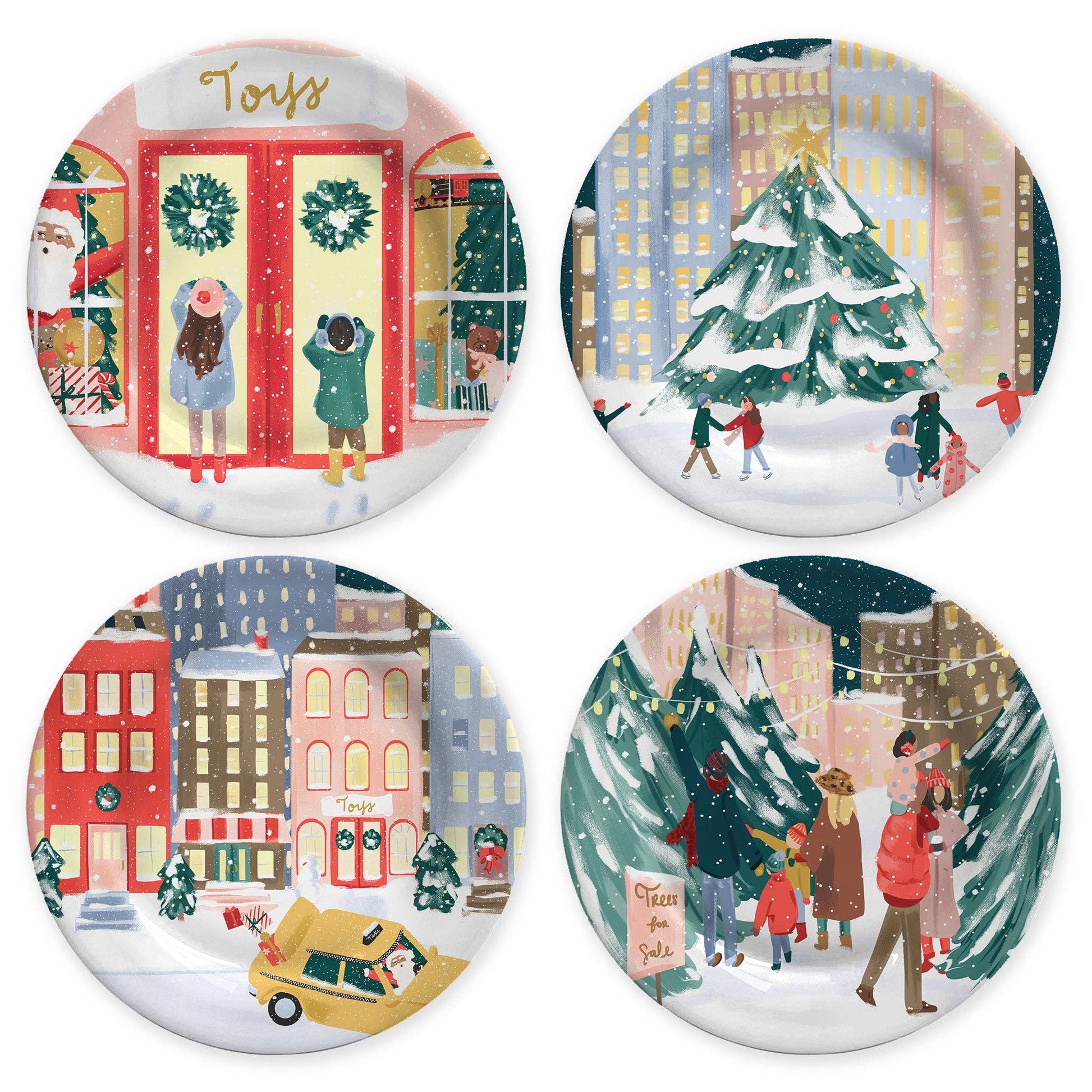 Bring a festive holiday spirit to your home this Christmas with this bamboo plate set. Featuring 4 different whimsical Christmas scene illustrations, these reusable plates are really special and will create Christmas magic for your loved ones all December long!