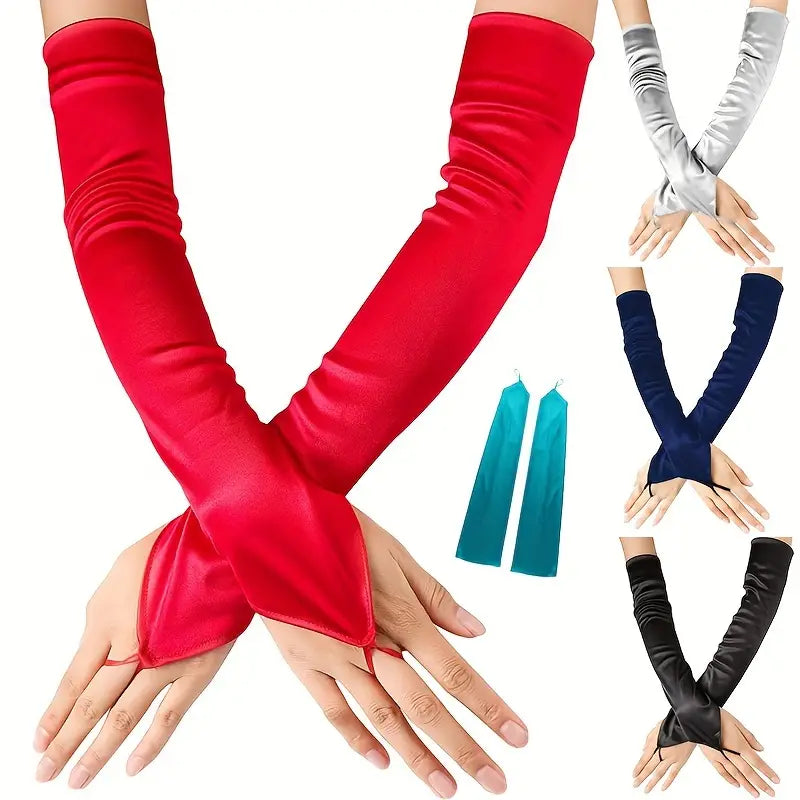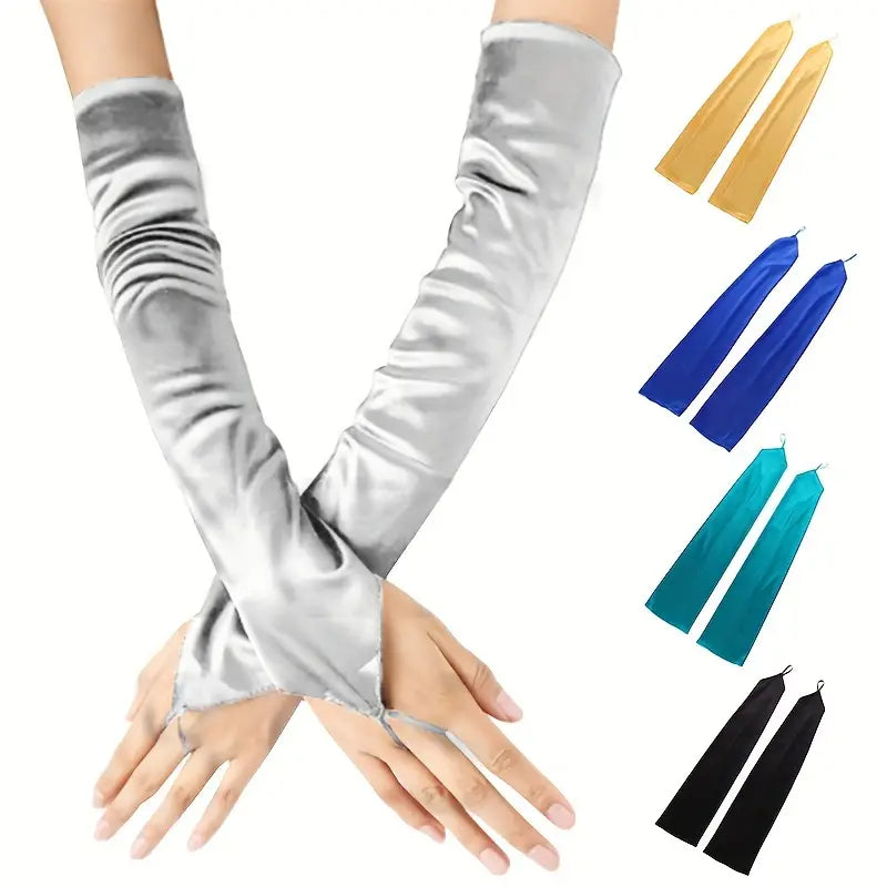 Stylish Satin Solid Color Gloves Elegant Long Hook Gloves Bridal Wedding Banquet Decorative Gloves