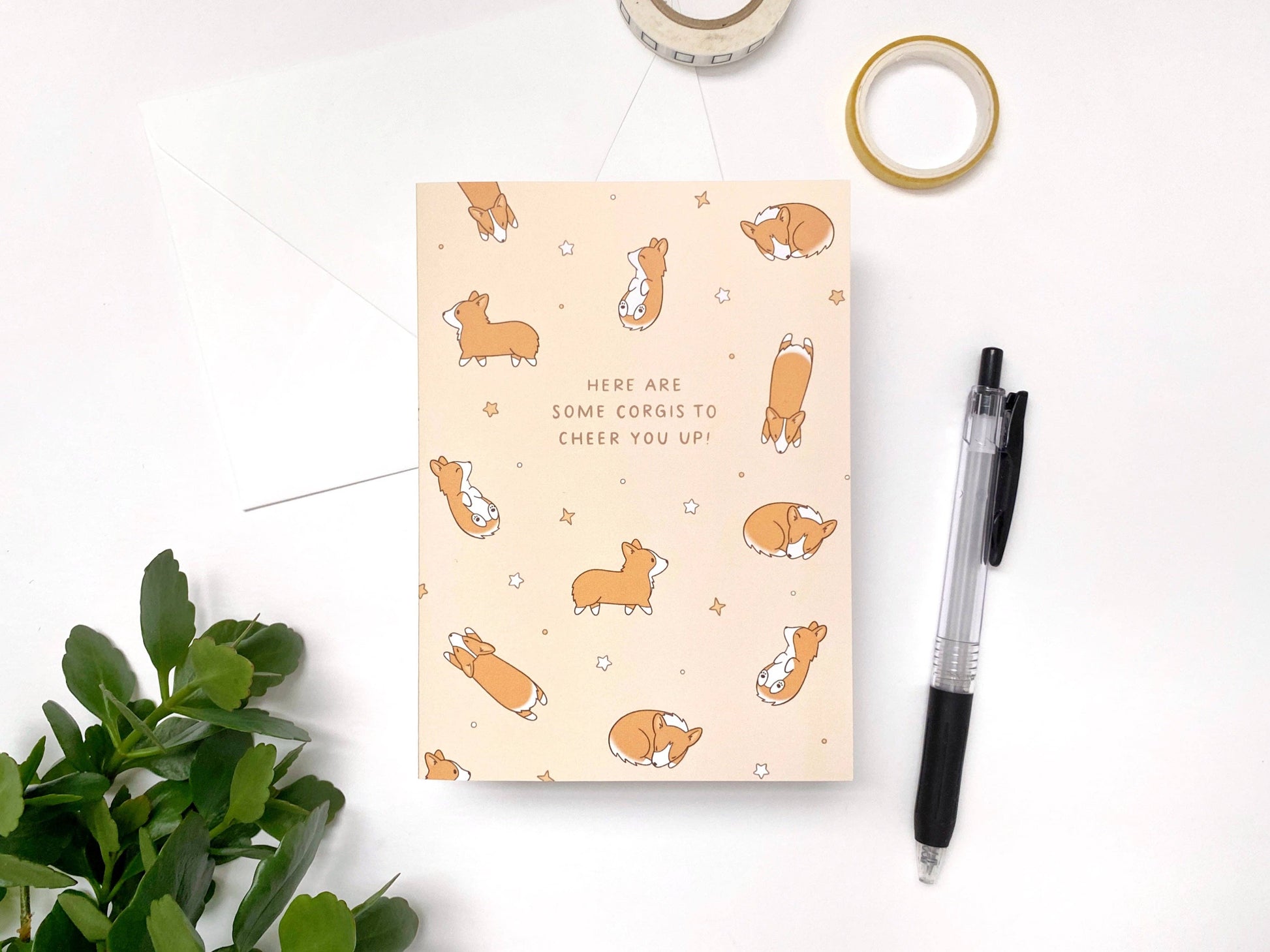 This greeting card is for when someone needs a little a corgi cheer, pick-me-up, encouragement, or just a reminder that you're here for them.