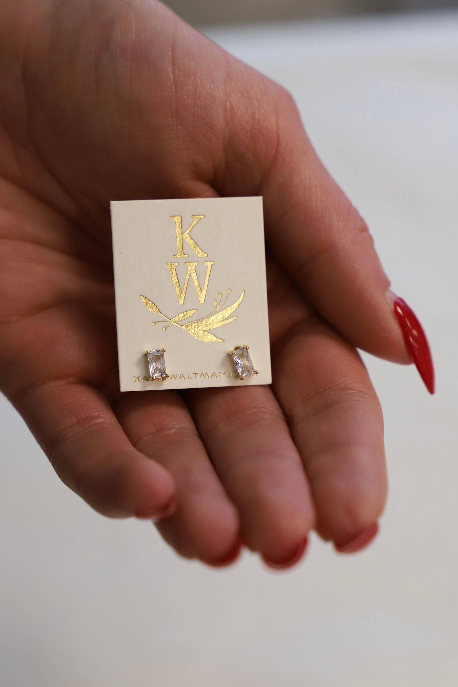 A rectangle shaped CZ stud. A classic stud for your jewelry collection.