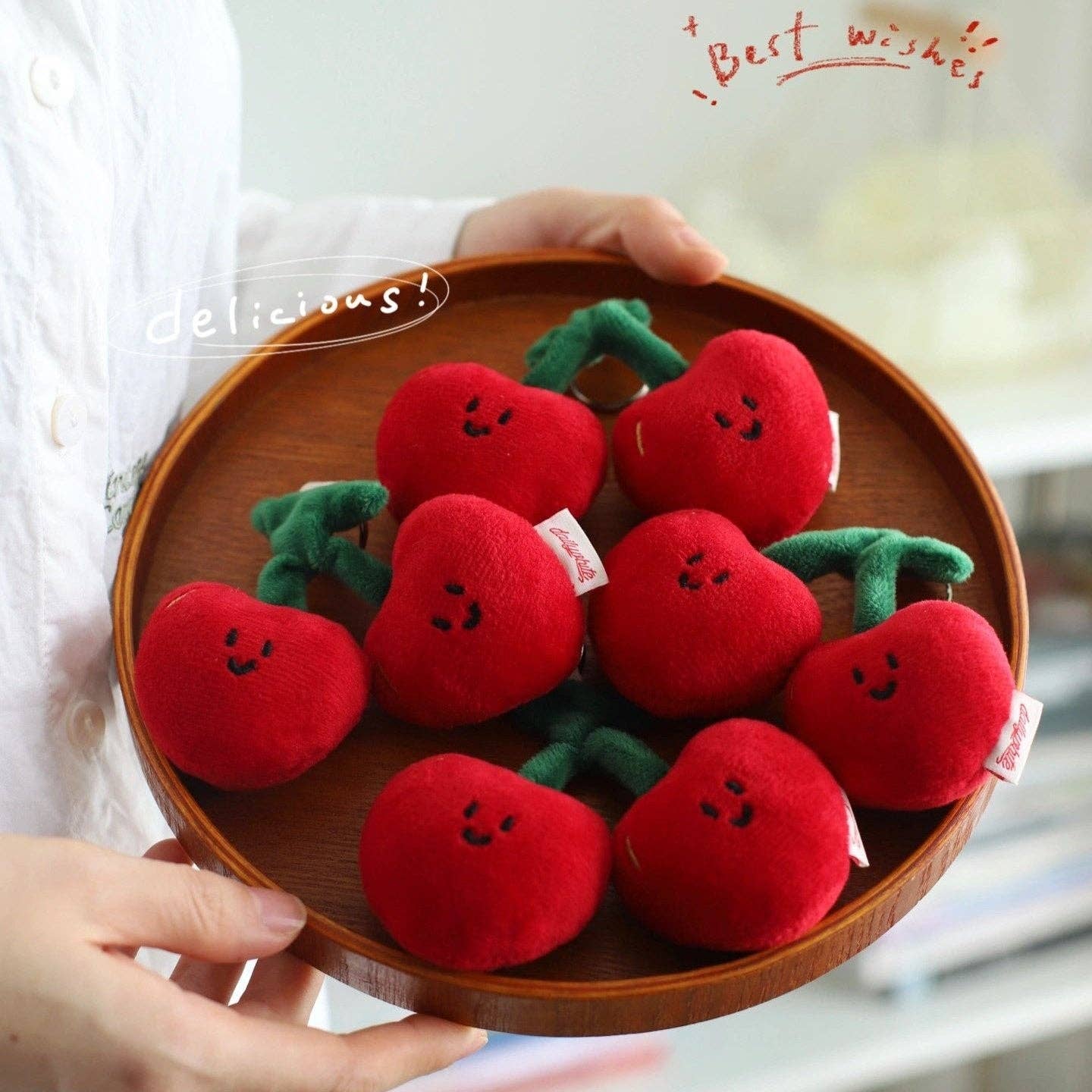 This charming little cherry is the perfect accessory for your keys, bag, or backpack. It is made of soft plush fabric and features a cute embroidered face. The perfect gift for fruit lovers of all ages!
