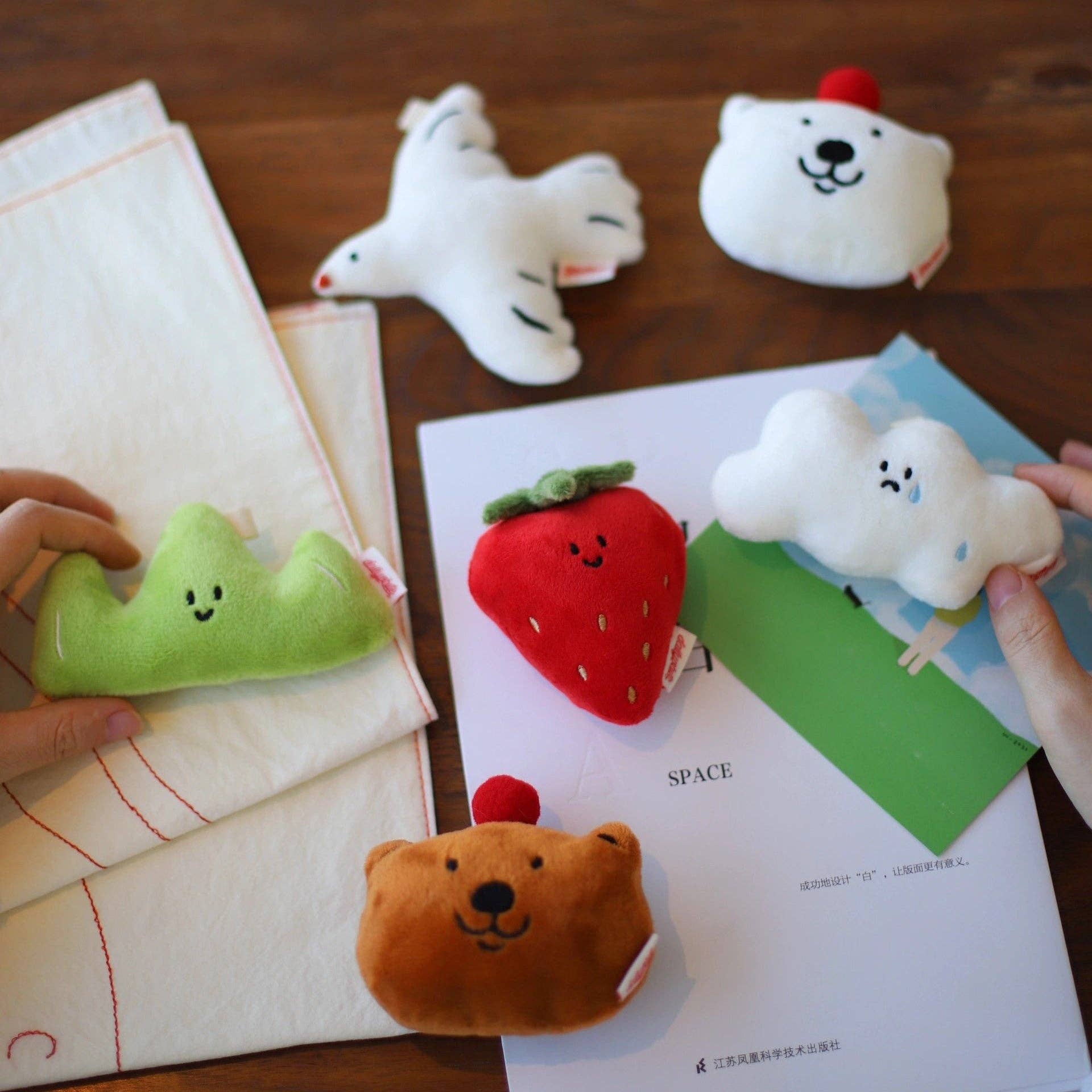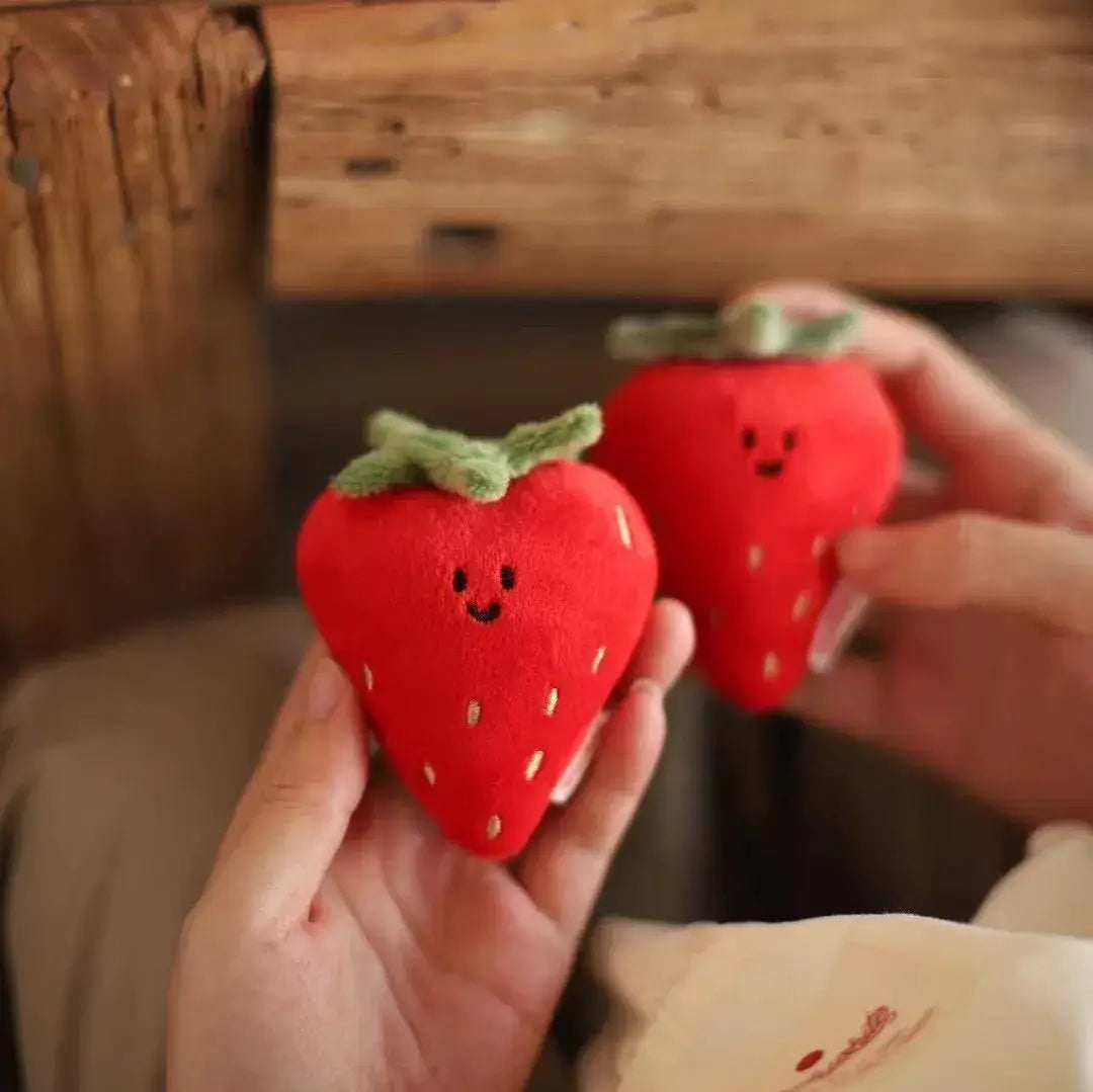 Looking for the perfect gift for a loved one or a charming addition to your plushie collection? This handmade strawberry plush is as sweet as can be! Featuring a soft, velvety red body, adorable embroidered face, and plush green leaves, this little strawberry is sure to bring a smile to your face.