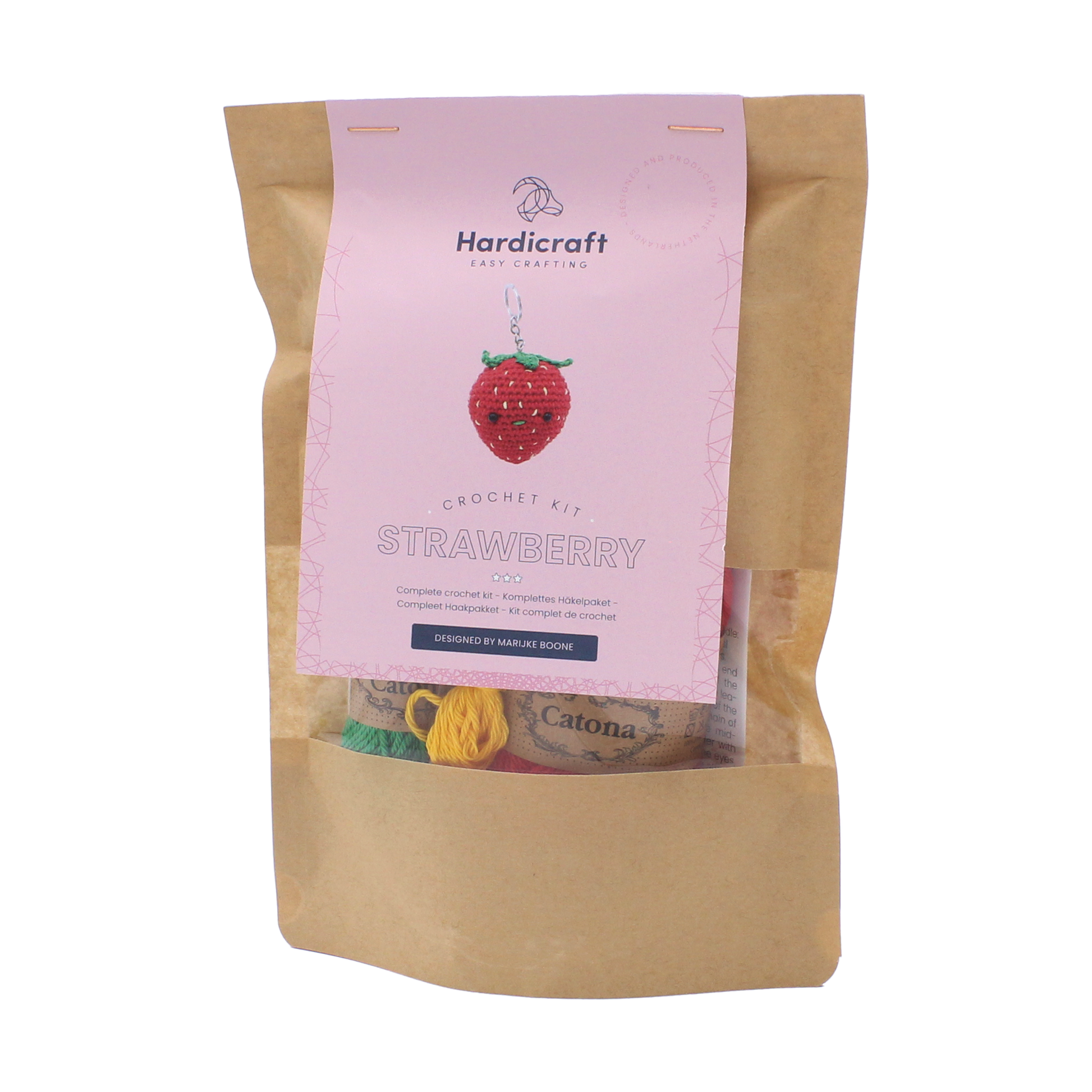 Pimp your bag with this cute strawberry bag hanger. Every (school) bag or keychain needs one anyway! This package includes a pattern, high-quality 100% cotton yarn and all the haberdashery needed to get to work (excluding crochet hook). The strawberry is about 7 cm high and is made with a 2.5 mm crochet hook.