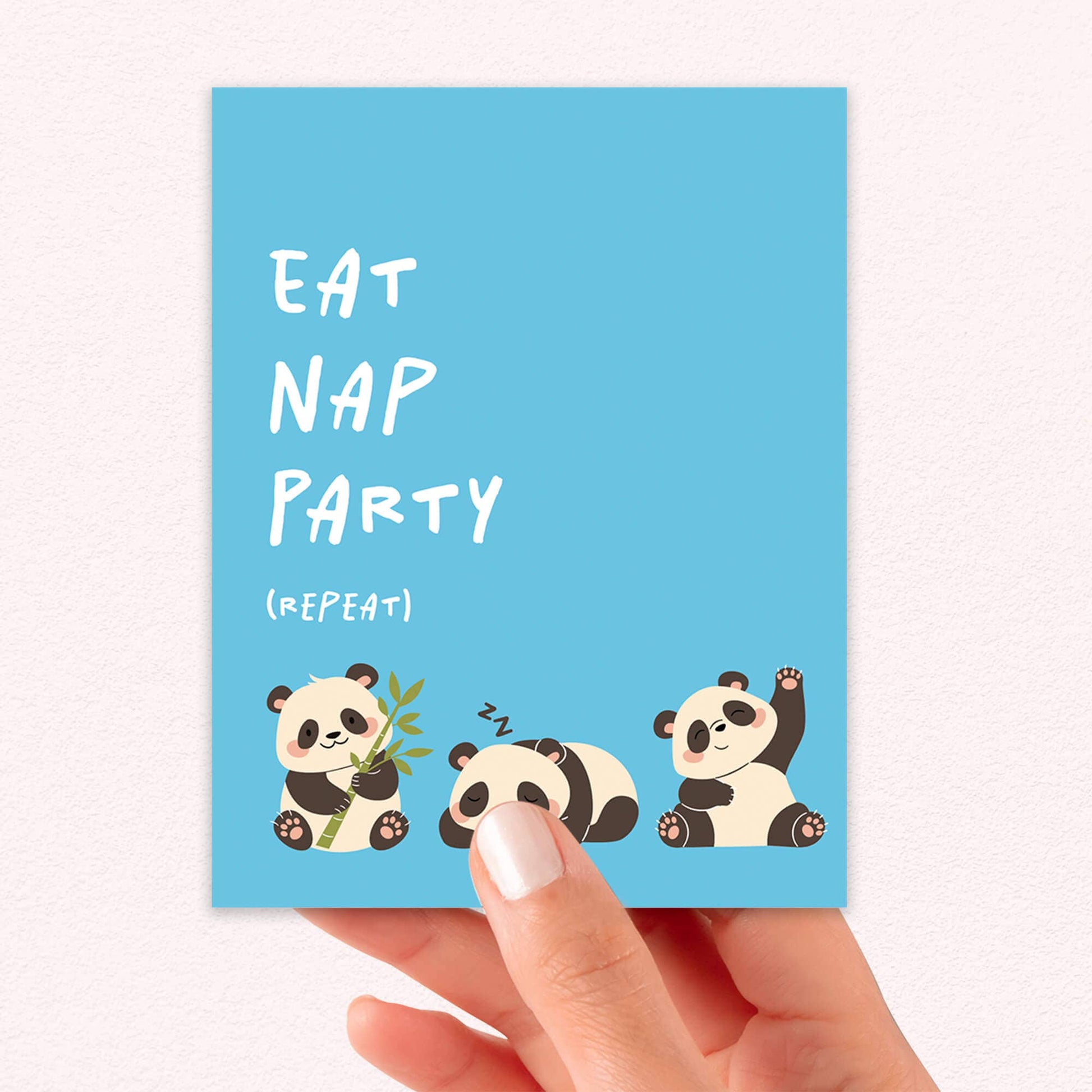 Eat Nap Party Birthday Card | Funny Aesthetic Chinese Panda Greeting Cards