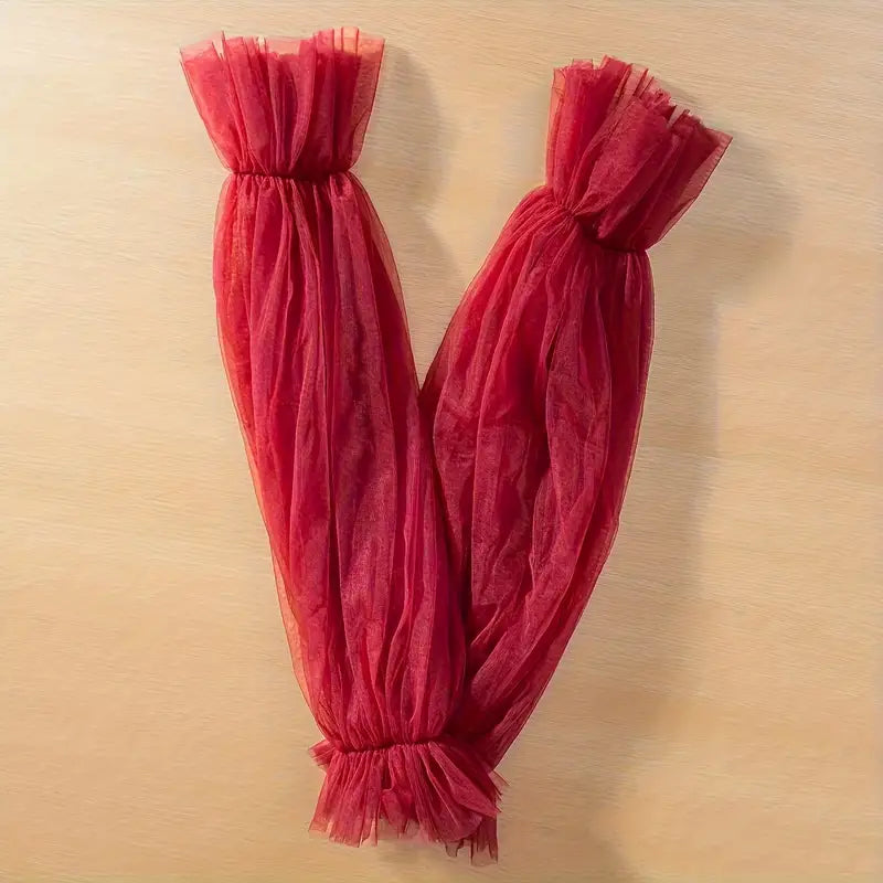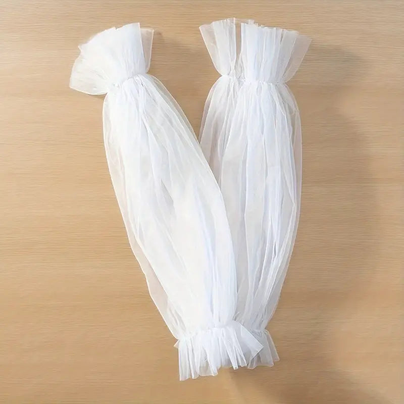 Elegant Detachable Wedding Dress Sleeves, Lantern Style Tulle With Ruffle Trim, Sheer Mesh Fabric, Easy Attach No-Sew Design For Bridal Gown And Photography