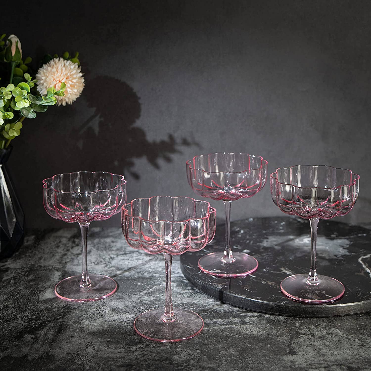 Elegant Flower Champagne & Cocktail Coupes - Pink Set of 4