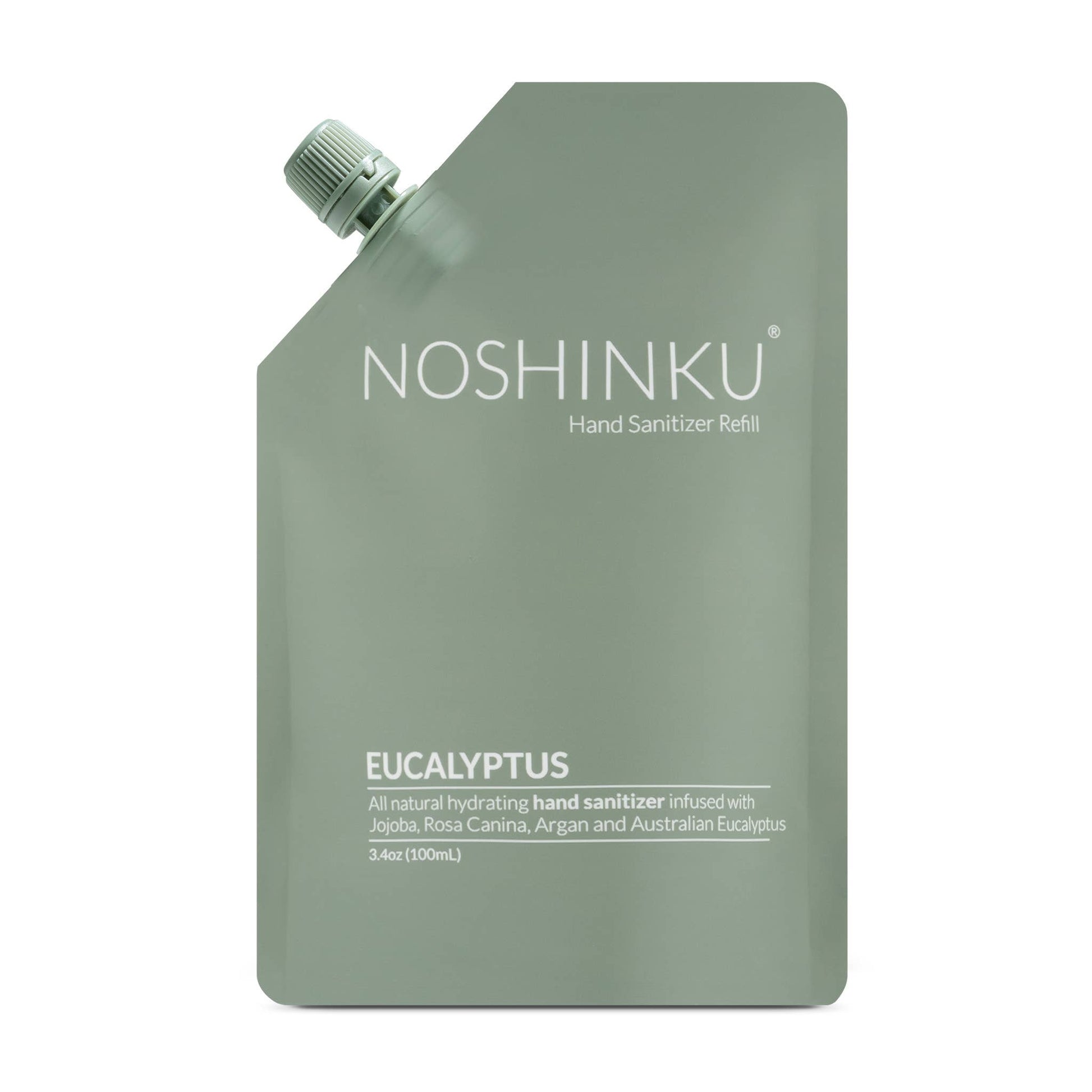 Moisturizing Eucalyptus and Rosemary Hand Sanitizer 100ml mini refill pouch. Travel friendly and TSA compliant for clean, hydrated hands wherever you go. Premium nourishing formulas, blended with 70% alcohol derived from organic sugarcane and containing oils of Australian Eucalyptus, Marjoram, Jojoba, Argan, Rosehip and Coconut to effectively clean hands while hydrating, moisturizing and protecting your skin. Includes one mini 100ml refill pouch for clean and fresh hands anywhere. Paraben-free; sulfate-free; phthalate-free; silicone-free. 100% organic. Made in the USA.