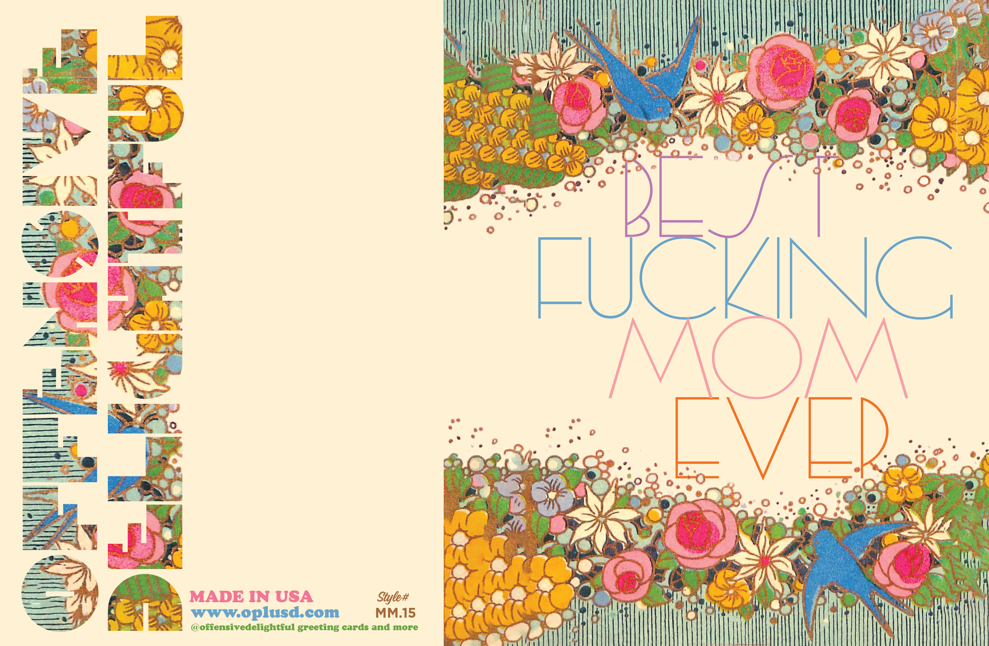 Style No. MM15 "BEST FUCKING MOM EVER" greeting cards tailored for sassy moms who appreciate love, impeccable design, and the occasional bad word delivered with perfect timing.