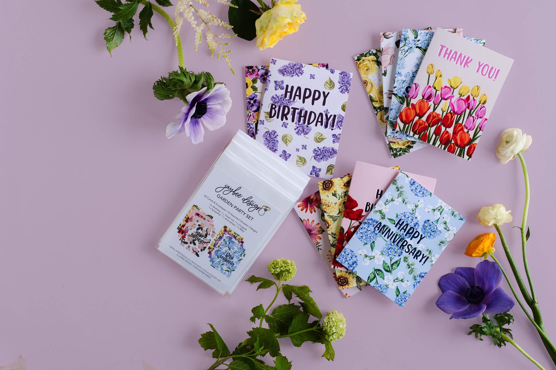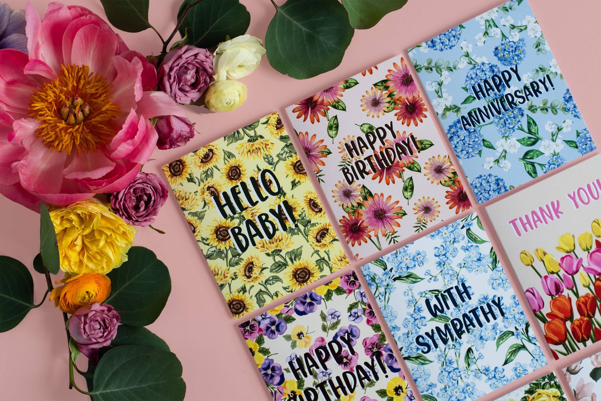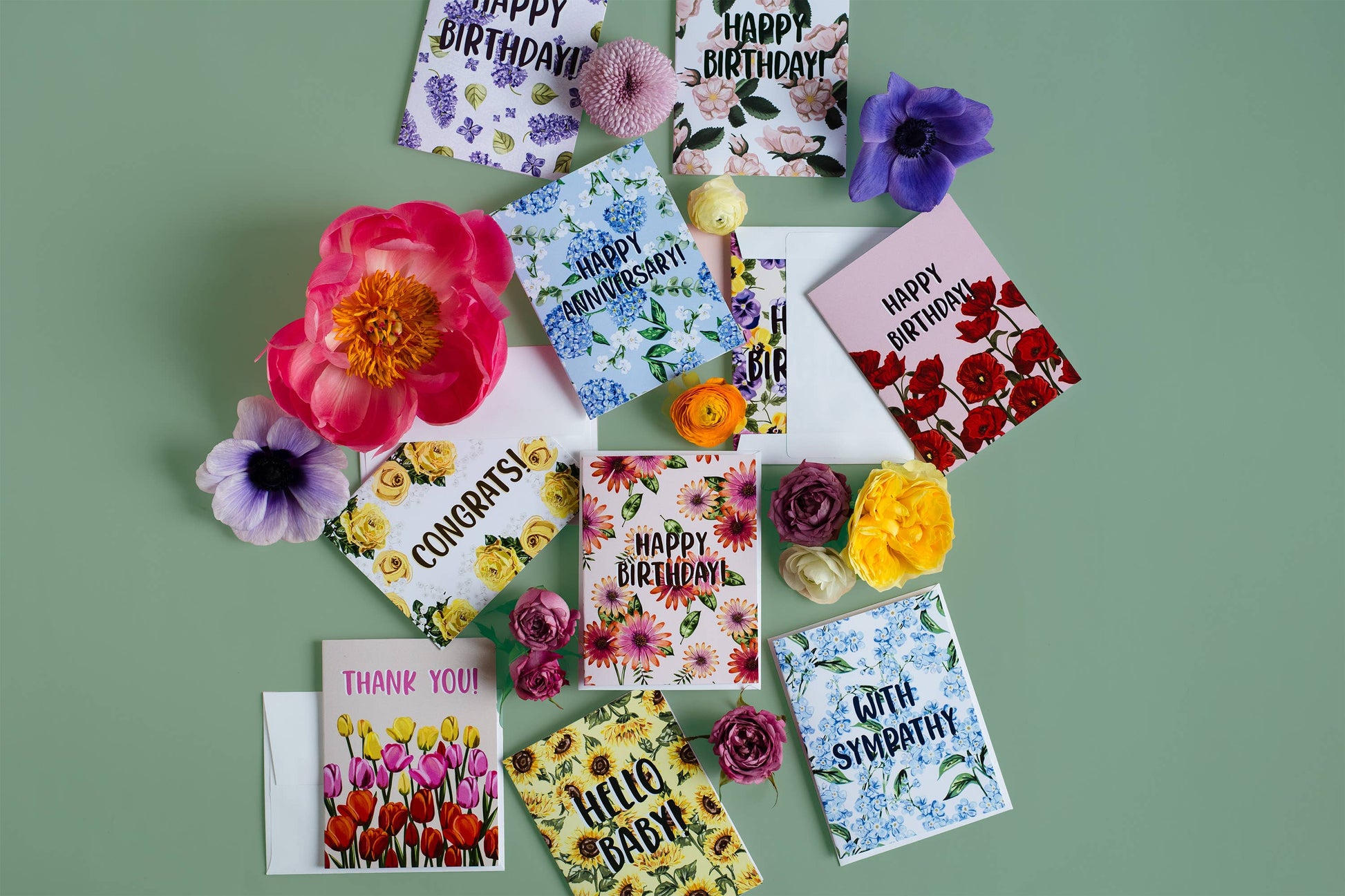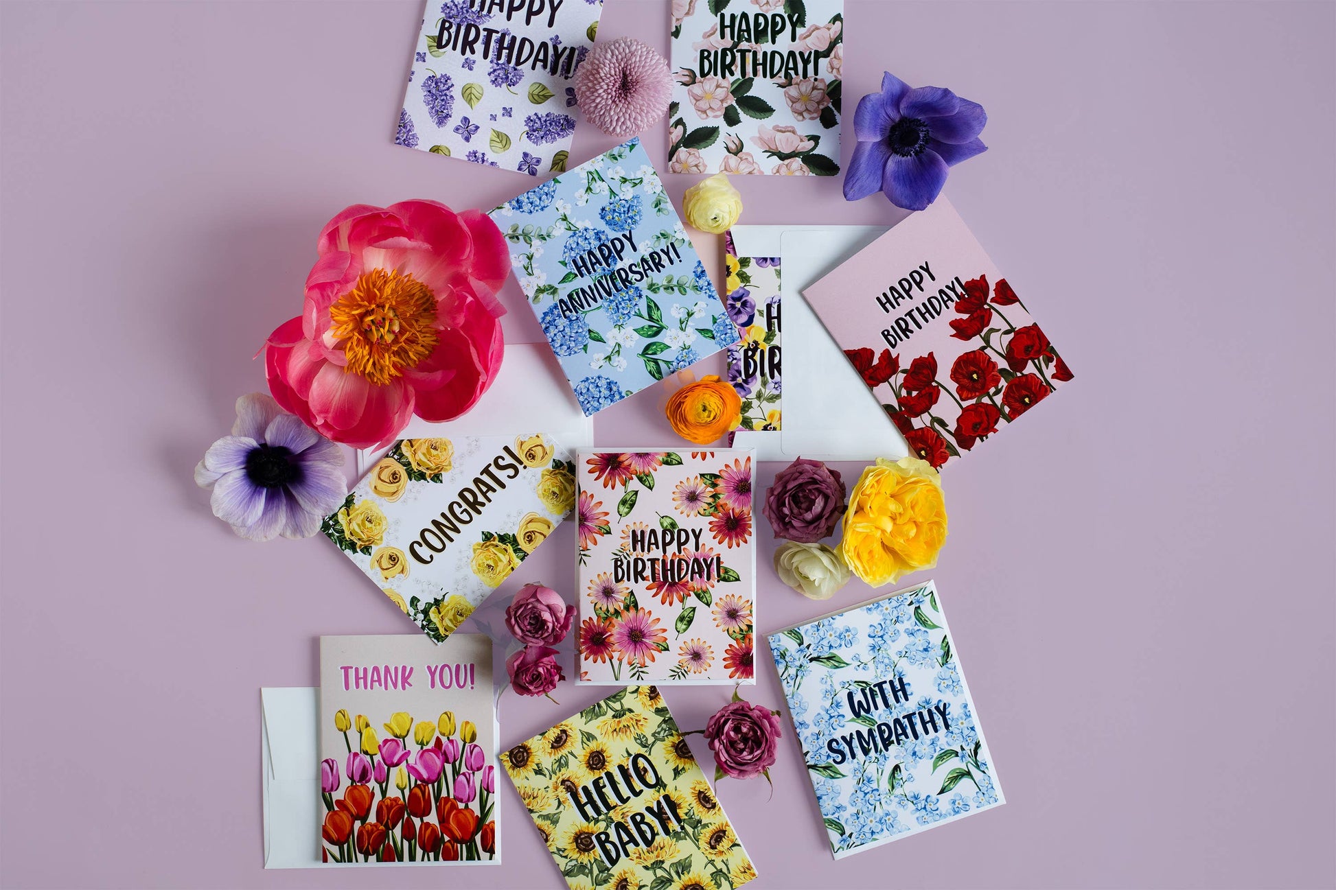 10 x A2 folded card (4.25" x 5.5" or 10.8cm x 14cm). Professionally printed on heavy 100lb bright white cardstock. Blank inside.