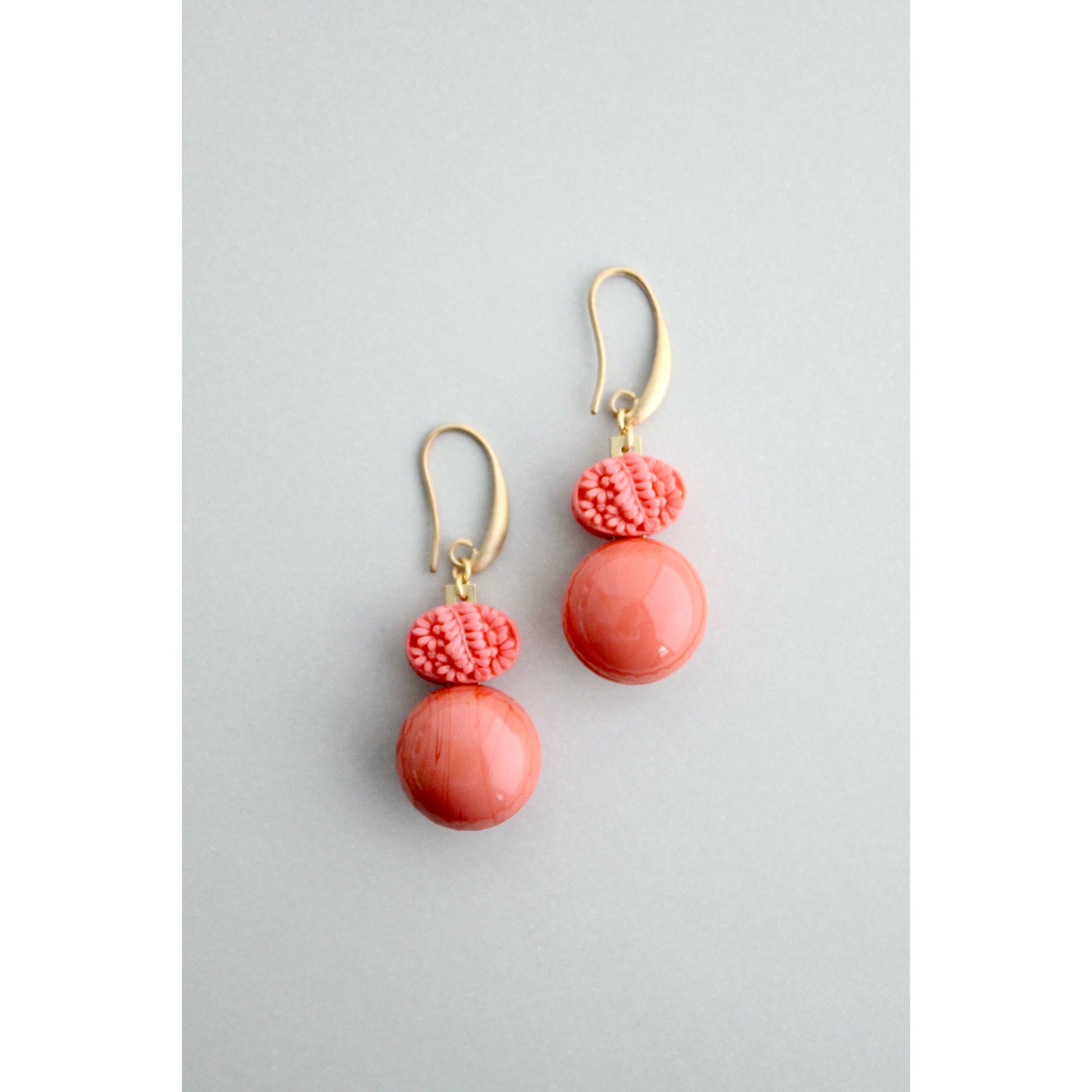 18k gold plated brass hook earrings with vintage glass. Each earring weighs .30 oz and measures 2 inches.