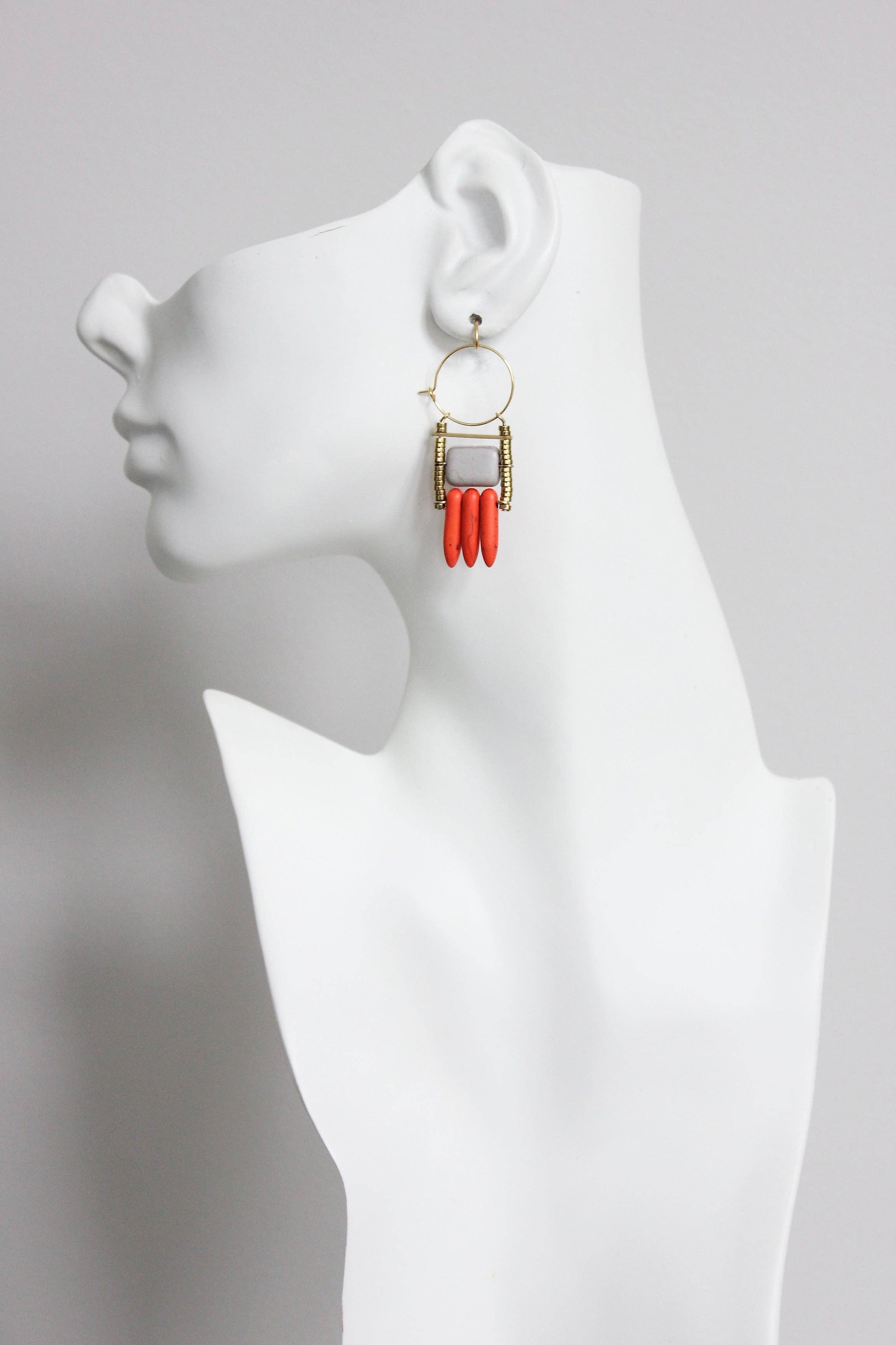 Small hoop earrings with plated hematite and magnesite. Each earring weighs .18 oz and measures 2.25 inches.