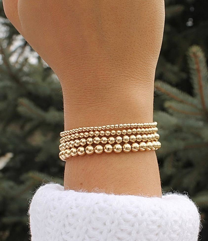 Gold Beads Bracelets- 14K Gold Steel Bead Stretch Bracelets