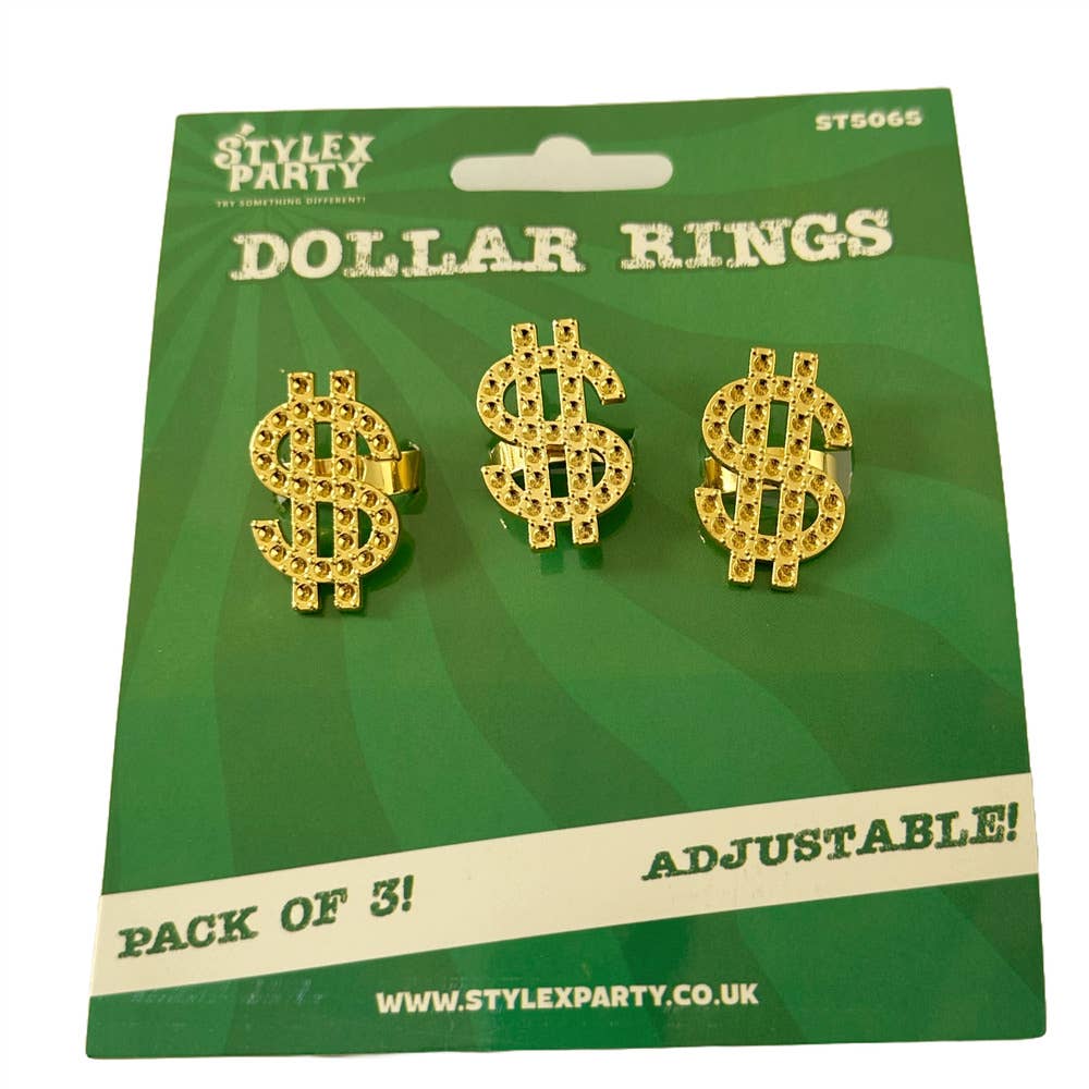 Gold Dollar Sign Rings Fancy Dress Jewellery Pack Of 3