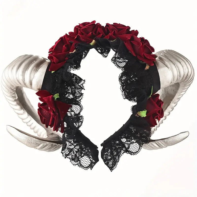 Gothic Ram Horn Halloween Devil Flower Headband For Women - Party Style, Cosplay Costume Hair Accessory
