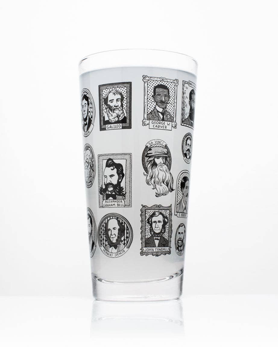 Here's to SCIENCE (and excellent facial hair). This Great Beards of Science Beer Glass features some of the greatest beards and mustaches known to science and it's built to hold a 12 oz can of beer (or seltzer or whatever your pleasure).