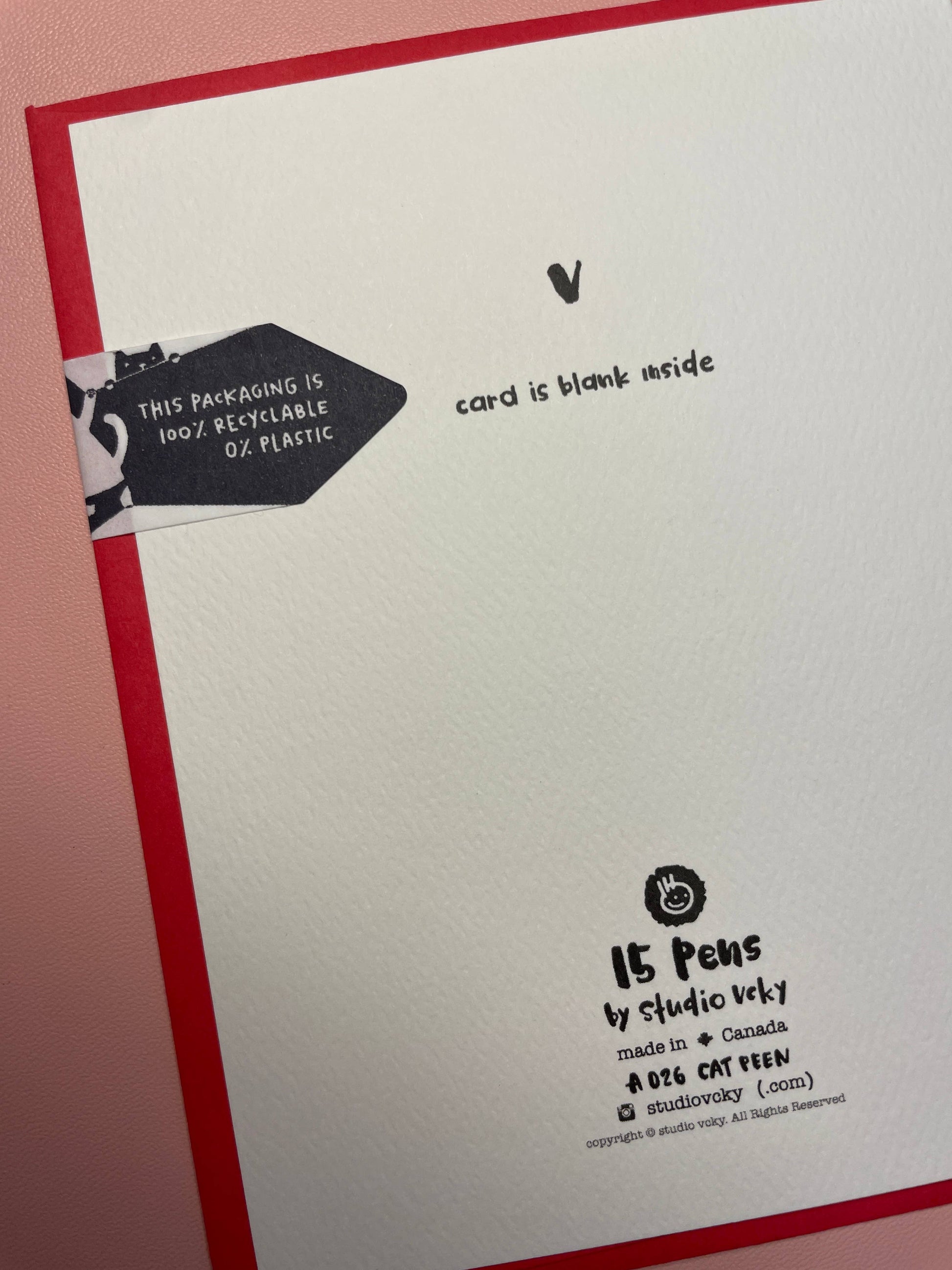 Attached to a red envelope with a card clasp sticker (cello sleeves available on request).