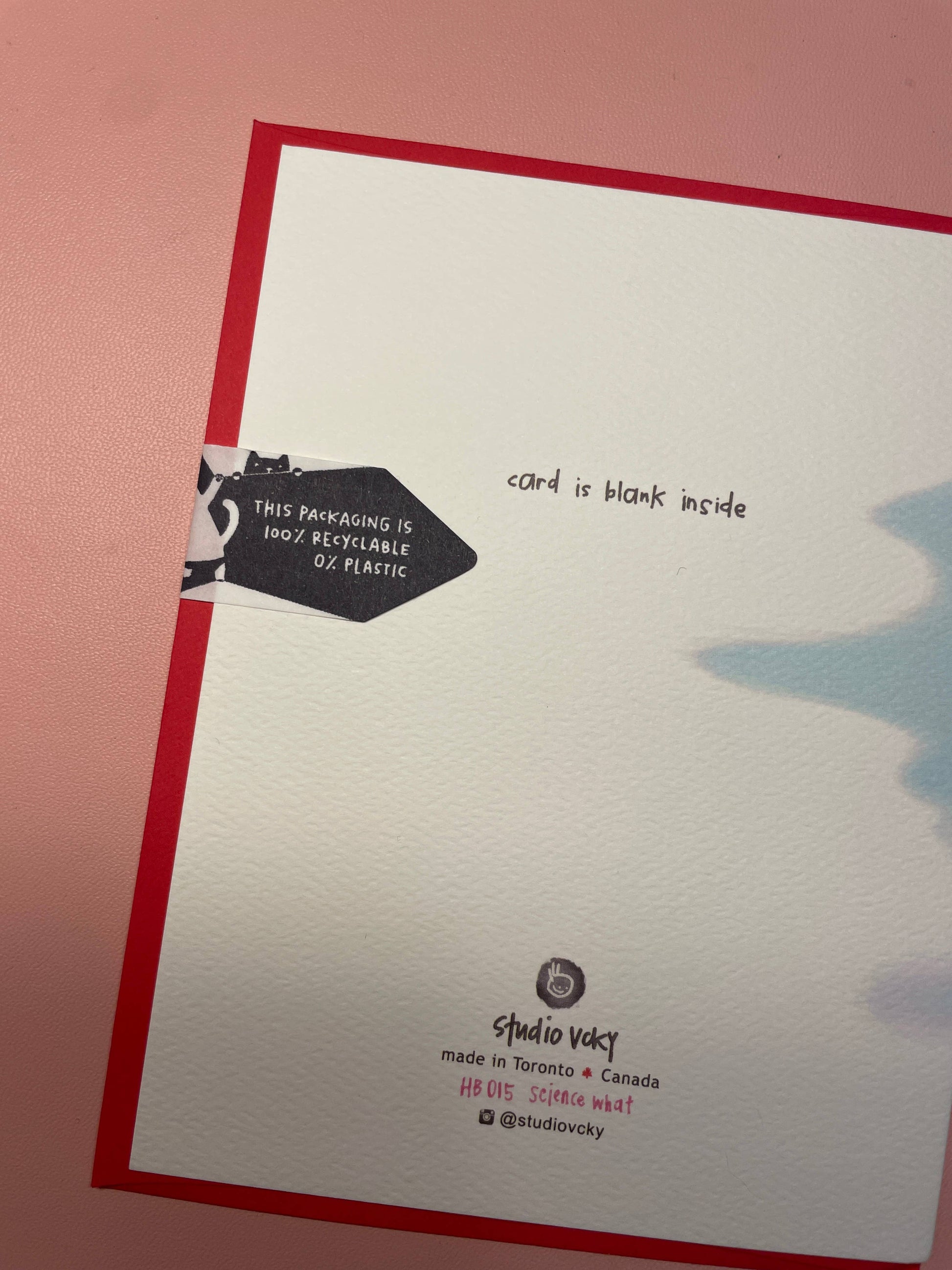 Attached to a red envelope with a card clasp sticker (cello sleeves available on request).