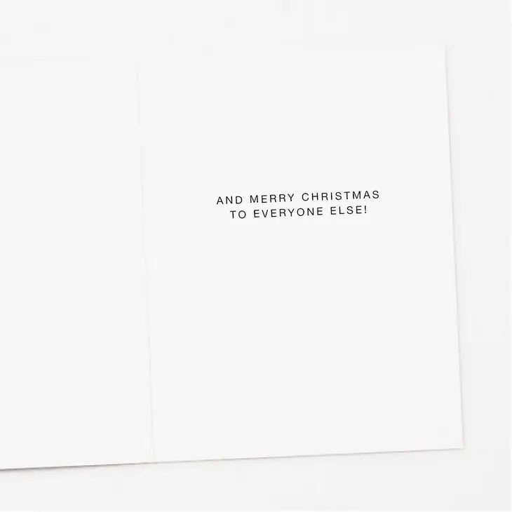Inside greeting: “AND MERRY CHRISTMAS TO EVERYONE ELSE!"
