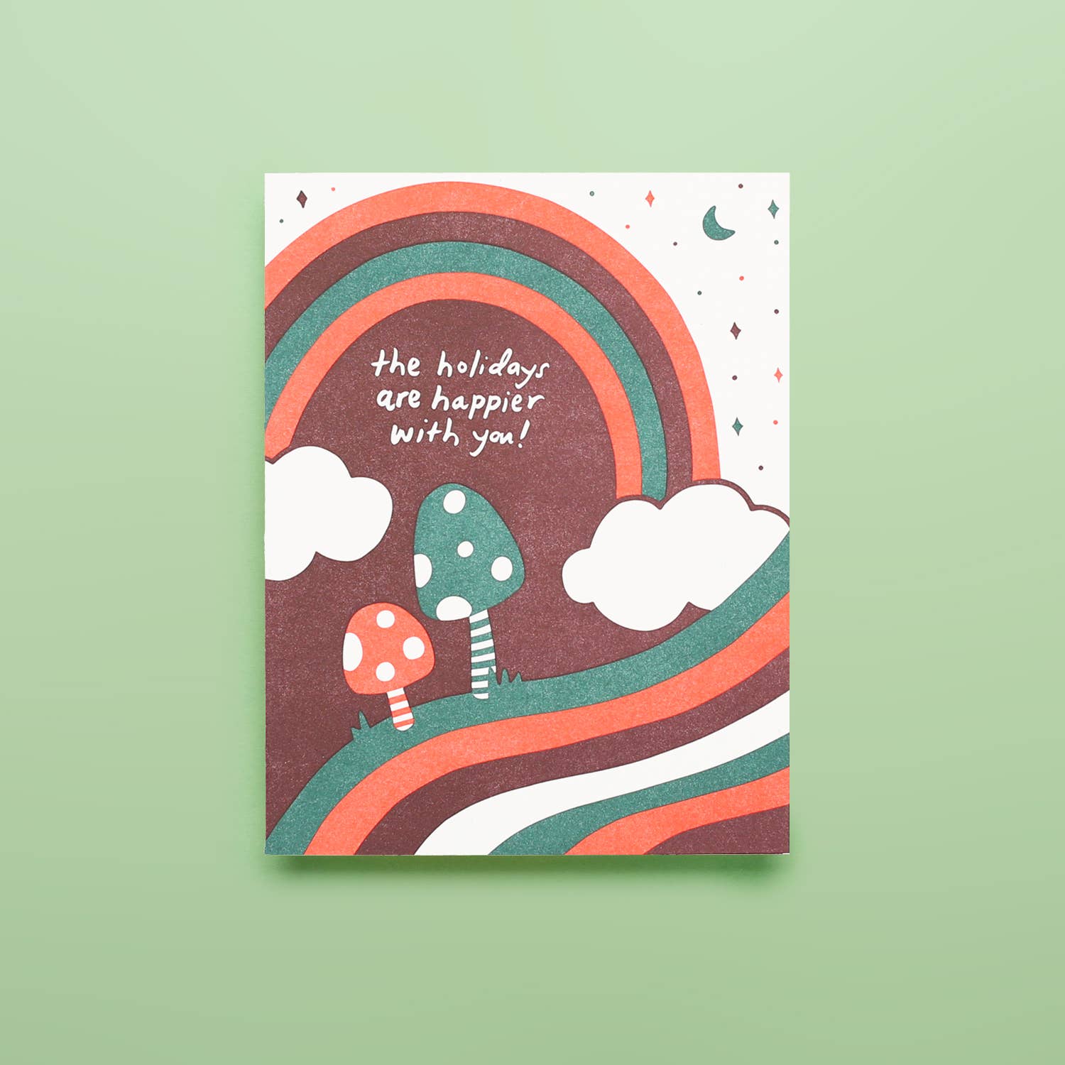 Letterpress printed by hand on 100% cotton paper (no trees!). Hand-mixed inks. Card measures 5.5 x 4.25 inches when folded, blank on the inside.