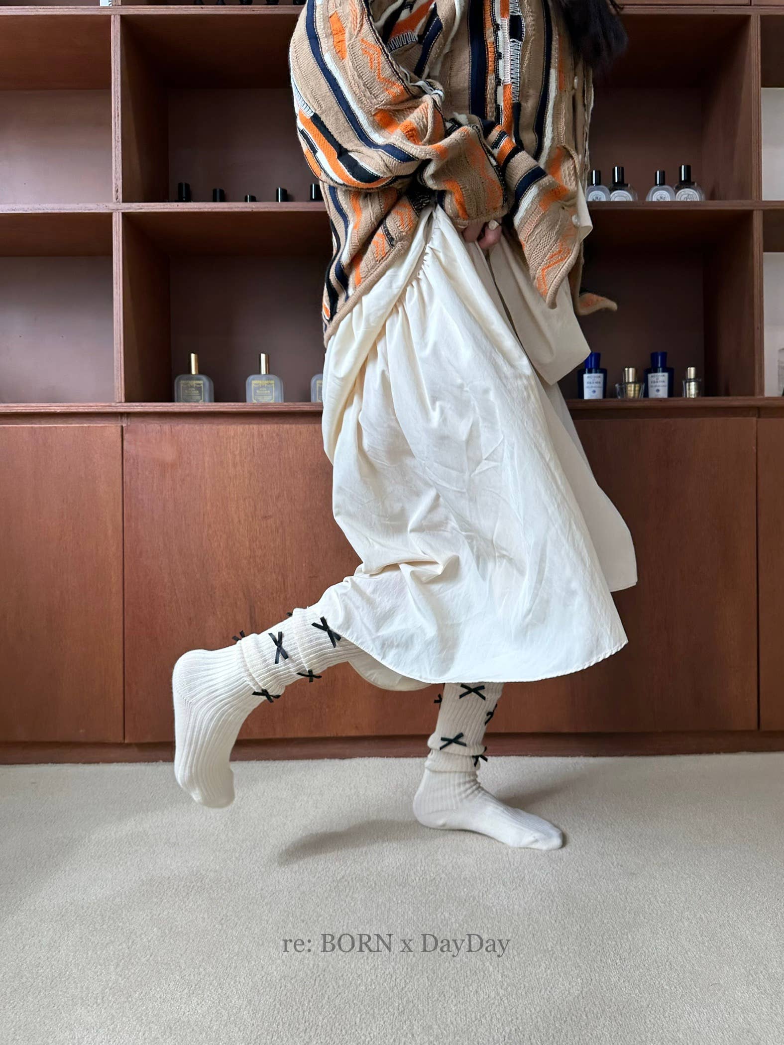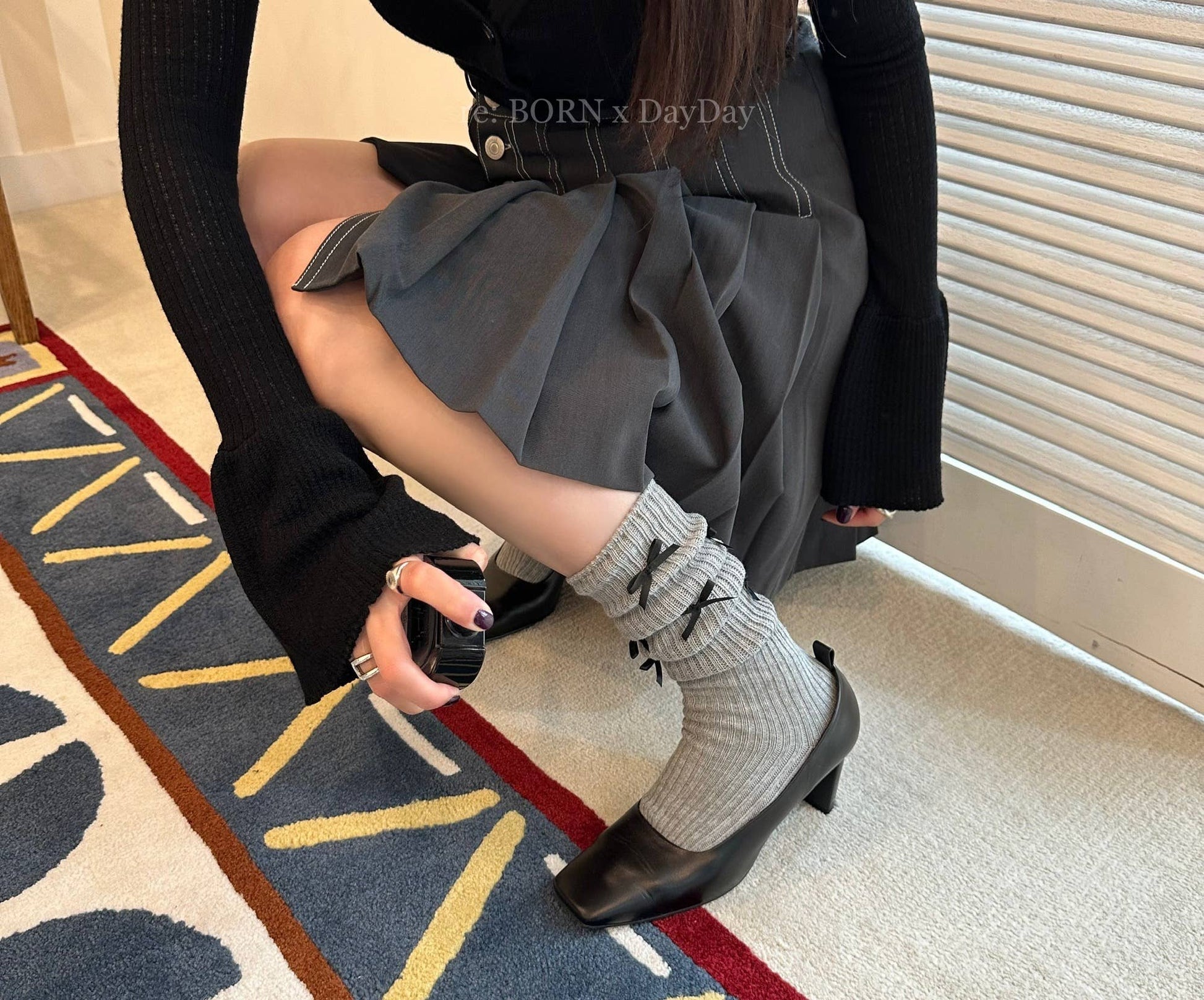Trendy! These are the popular ribbon socks these days.
