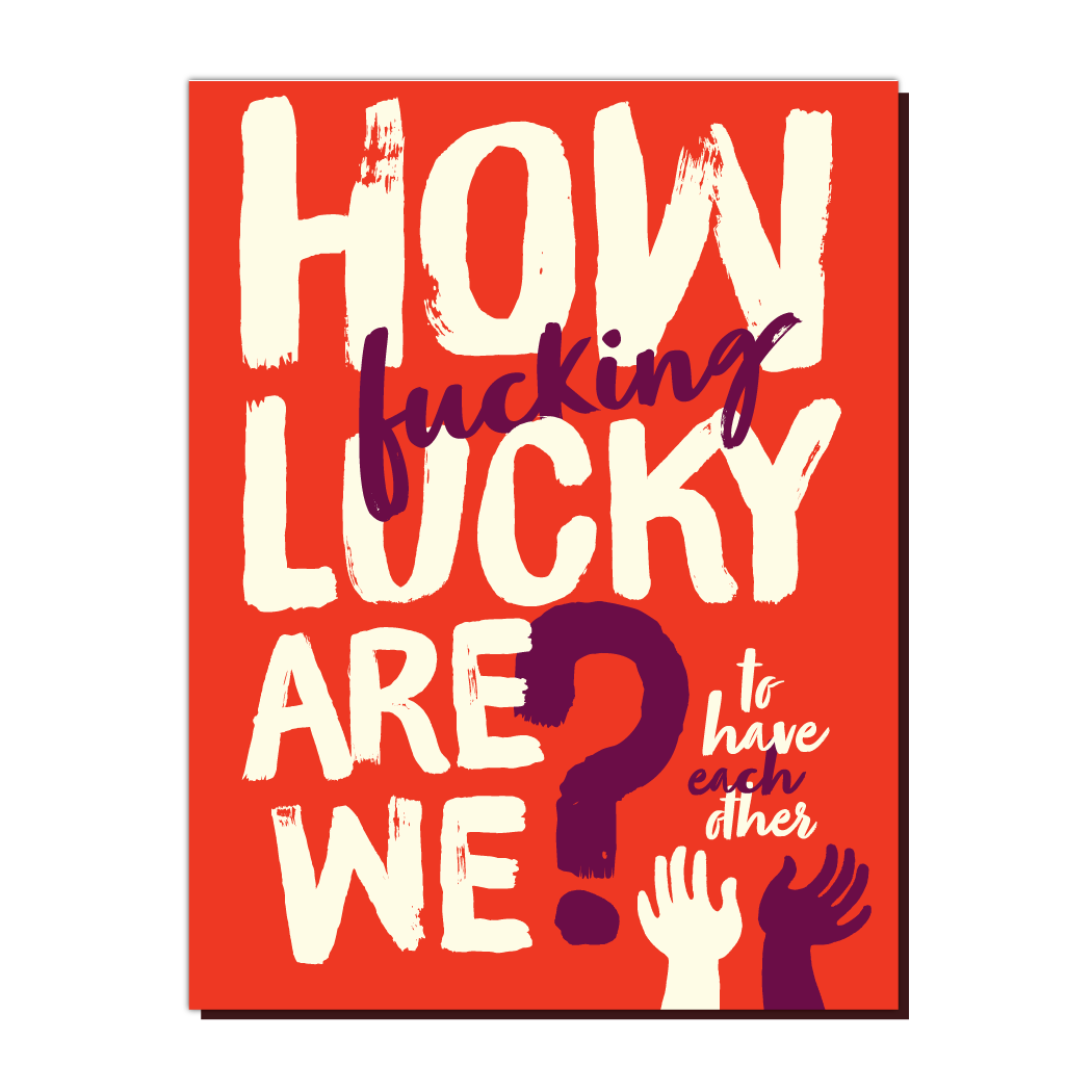"How fucking lucky are we to have each other?" Style No. LV21 funny and cool card for LOVE, Valentine's Day, sexy time, marriage, anniversary