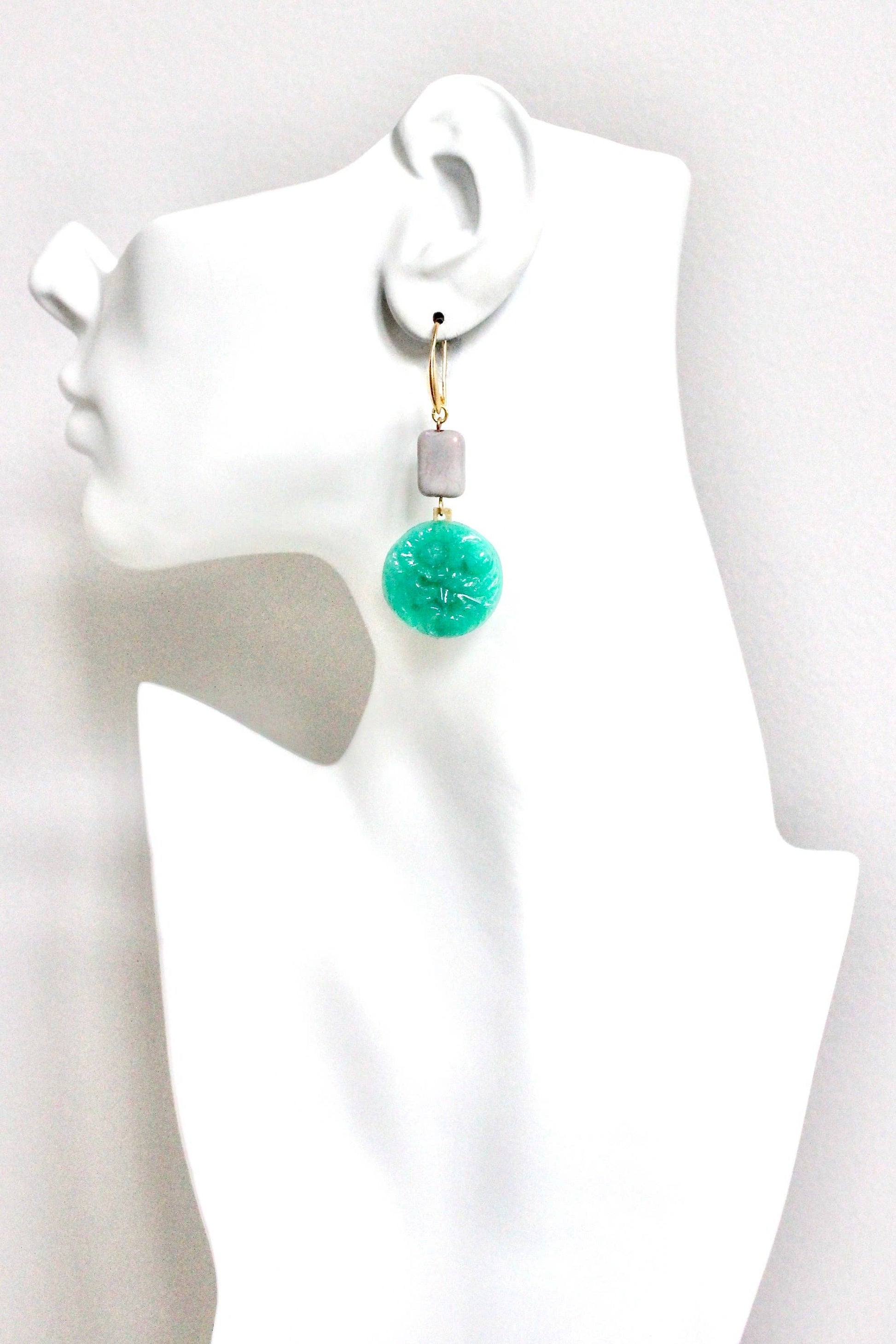 HYLE37 Vintage green glass earrings