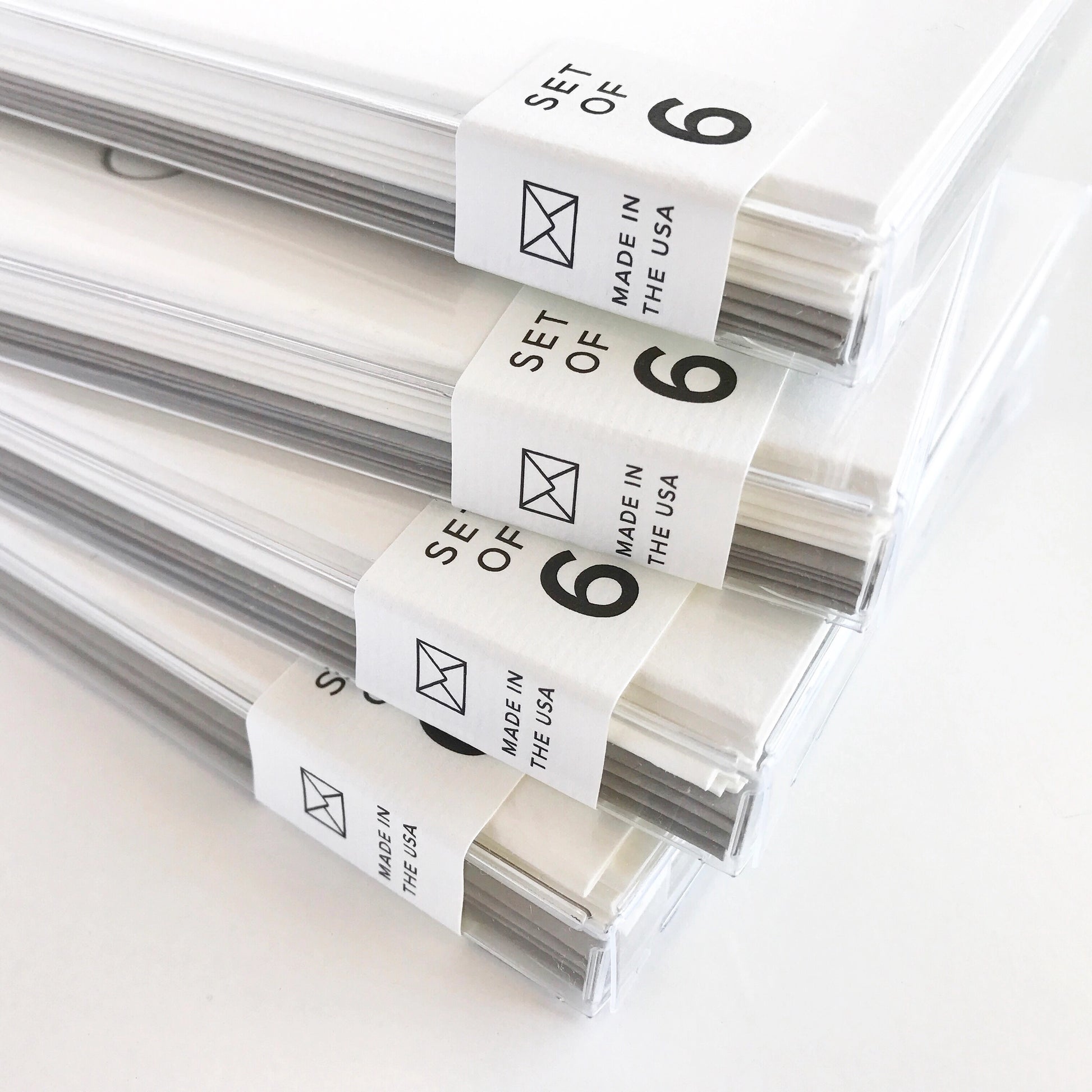 A2 boxed set of six folded greeting cards of the same style. Cards are blank inside. Paired with six square flap envelopes and packaged in a clear box with paper backer. All INK MEETS PAPER goods are designed, letterpress printed on antique machines (one color at a time!), and assembled by hand at our studio in sunny South Carolina, USA.