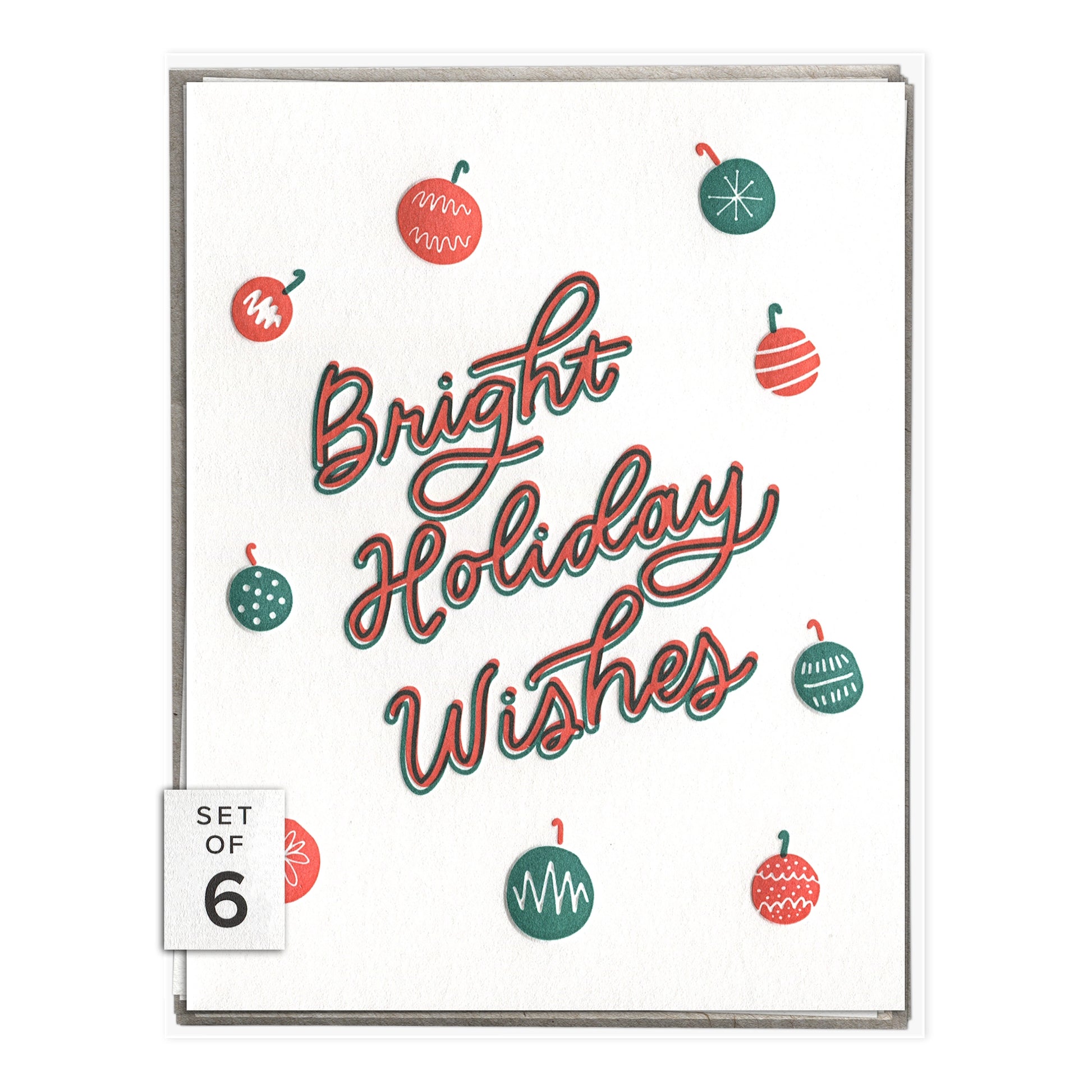 A2 boxed set of six folded greeting cards of the same style. Cards are blank inside. Paired with six square flap envelopes and packaged in a clear box with paper backer. All INK MEETS PAPER goods are designed, letterpress printed on antique machines (one color at a time!), and assembled by hand at our studio in sunny South Carolina, USA.