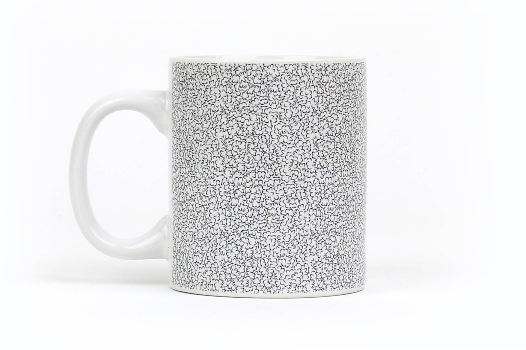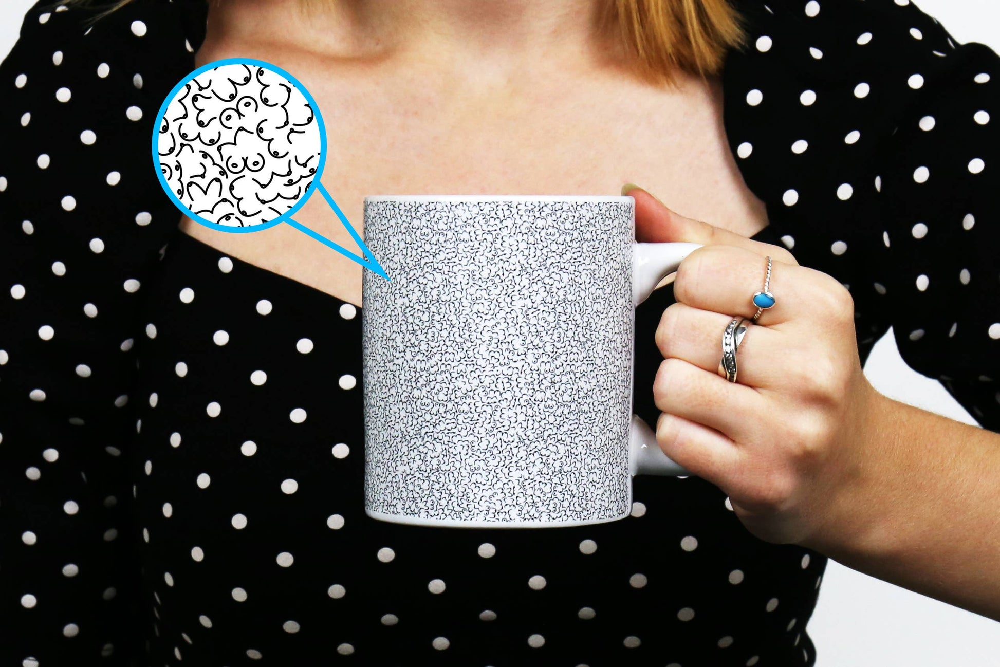 Treat your guests to our Itty-Bitty-Titty mug! From far away the microscopic pattern looks like an unassuming, tit free mug, but when they go to take a sip they’ll realise this mug bears billions of itty bitty boobs.