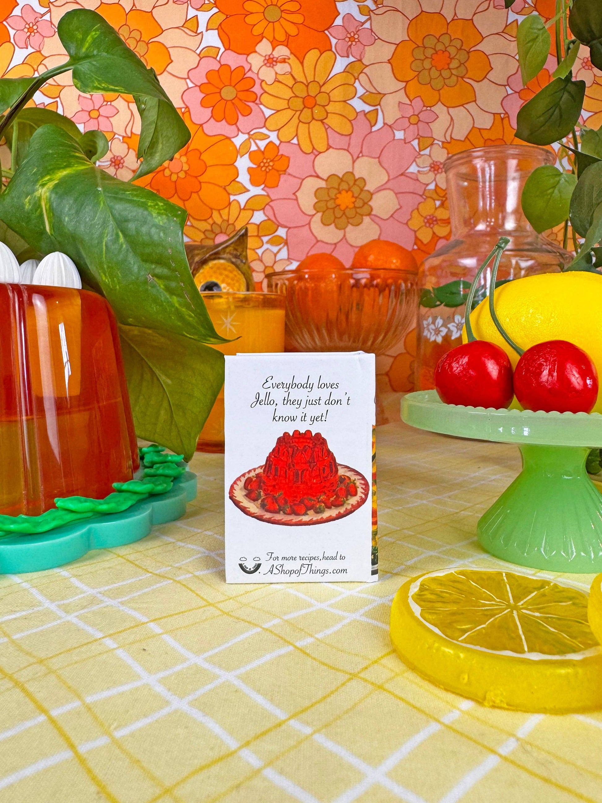 Designed to look and open like an actual book, these matches feature tons of delicious recipes for jello enthusiasts everywhere!