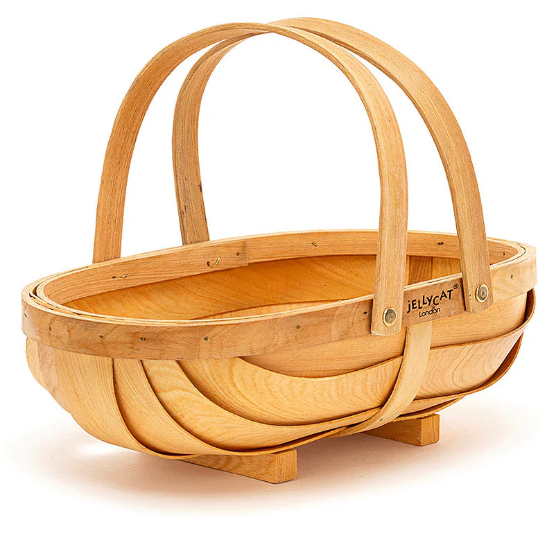 Jellycat Fabulous Fruit Wooden Basket. This is the perfect way to display your collection of Fabulous Fruit. The basket comes in the typical trug style with two handles and wooden stabilizers plus the classic 'Jellycat' logo stamped into the rim. The perfect accessory to keep your fruit organized, safe, and sound. Perfect to bring for picnics, tea parties, or any outdoor outing!
