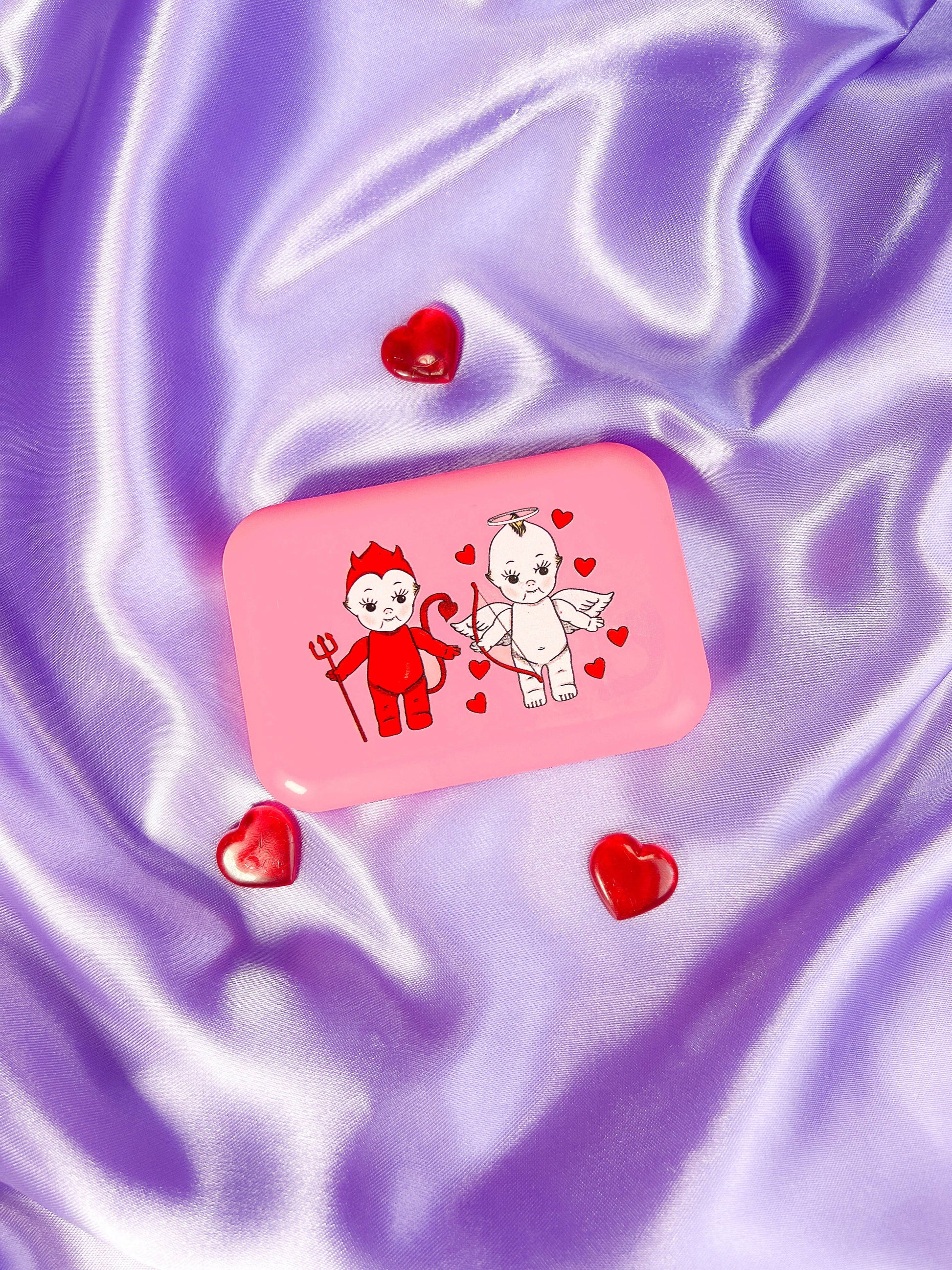 These mini stash boxes have an angel and devil kewpie on them to fully represent both sides of your (my?) personality